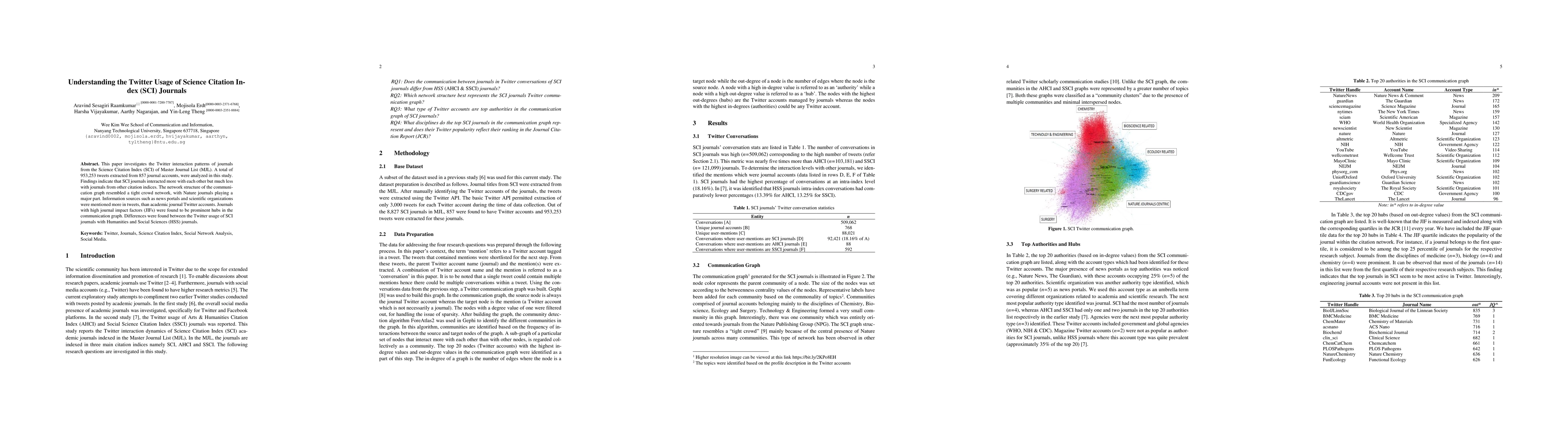 The study presents a methodology for constructing and analyzing a communication graph of SCI journals on Twitter, identifying authorities and hubs based on in-degree and out-degree centrality.