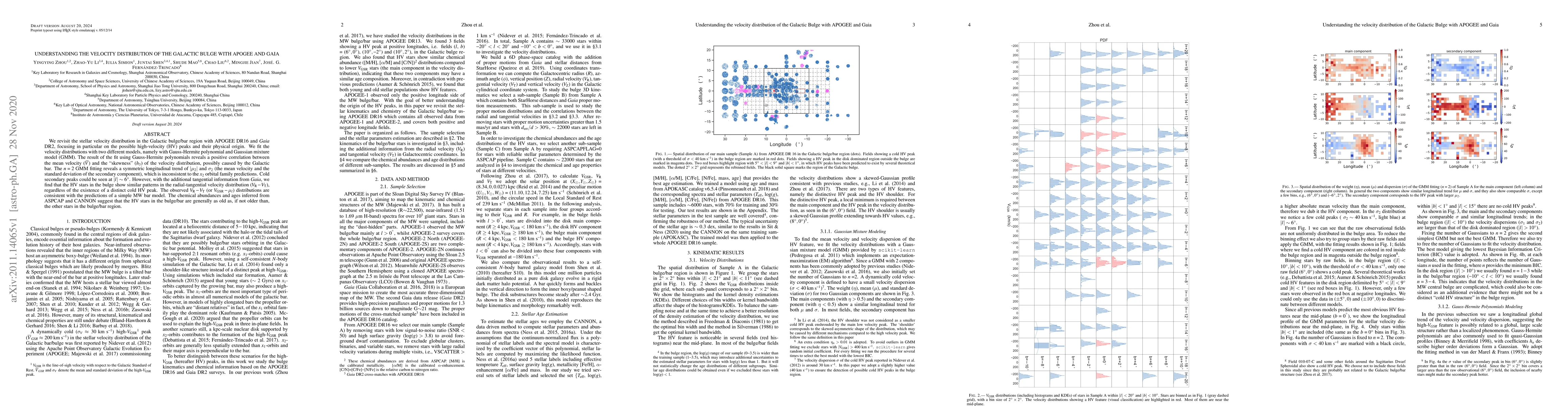 We revisit the stellar velocity distribution in the Galactic bulge/bar region with APOGEE DR16 and {\it Gaia} DR2, focusing in particular on the possible high-velocity (HV) peaks and their physical origin. We fit the velocity distributions with two different models, namely with Gauss-Hermite polynomial and Gaussian mixture model (GMM). The result of the fit using Gauss-Hermite polynomials reveals a positive correlation between the mean velocity ($\bar{V}$) and the "skewness" ($h_{3}$) of the velocity distribution, possibly caused by the Galactic bar. The $n=2$ GMM fitting reveals a symmetric longitudinal trend of $|\mu_{2}|$ and $\sigma_{2}$ (the mean velocity and the standard deviation of the secondary component), which is inconsistent to the $x_{2}$ orbital family predictions. Cold secondary peaks could be seen at $|l|\sim6^\circ$. However, with the additional tangential information from {\it Gaia}, we find that the HV stars in the bulge show similar patterns in the radial-tangential velocity distribution ($V_{\rm R}-V_{\rm T}$), regardless of the existence of a distinct cold HV peak. The observed $V_{\rm R}-V_{\rm T}$ (or $V_{\rm GSR}-\mu_{l}$) distributions are consistent with the predictions of a simple MW bar model. The chemical abundances and ages inferred from ASPCAP and CANNON suggest that the HV stars in the bulge/bar are generally as old as, if not older than, the other stars in the bulge/bar region.