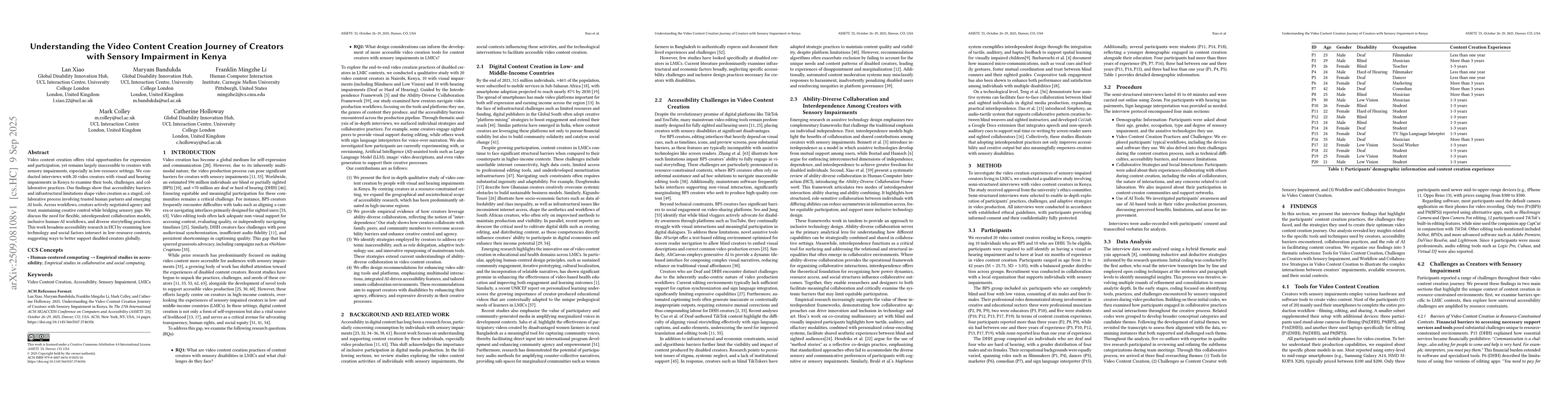Video content creation offers vital opportunities for expression and participation, yet remains largely inaccessible to creators with sensory impairments, especially in low-resource settings. We conducted interviews with 20 video creators with visual and hearing impairments in Kenya to examine their tools, challenges, and collaborative practices. Our findings show that accessibility barriers and infrastructural limitations shape video creation as a staged, collaborative process involving trusted human partners and emerging AI tools. Across workflows, creators actively negotiated agency and trust, maintaining creative control while bridging sensory gaps. We discuss the need for flexible, interdependent collaboration models, inclusive human-AI workflows, and diverse storytelling practices. This work broadens accessibility research in HCI by examining how technology and social factors intersect in low-resource contexts, suggesting ways to better support disabled creators globally.