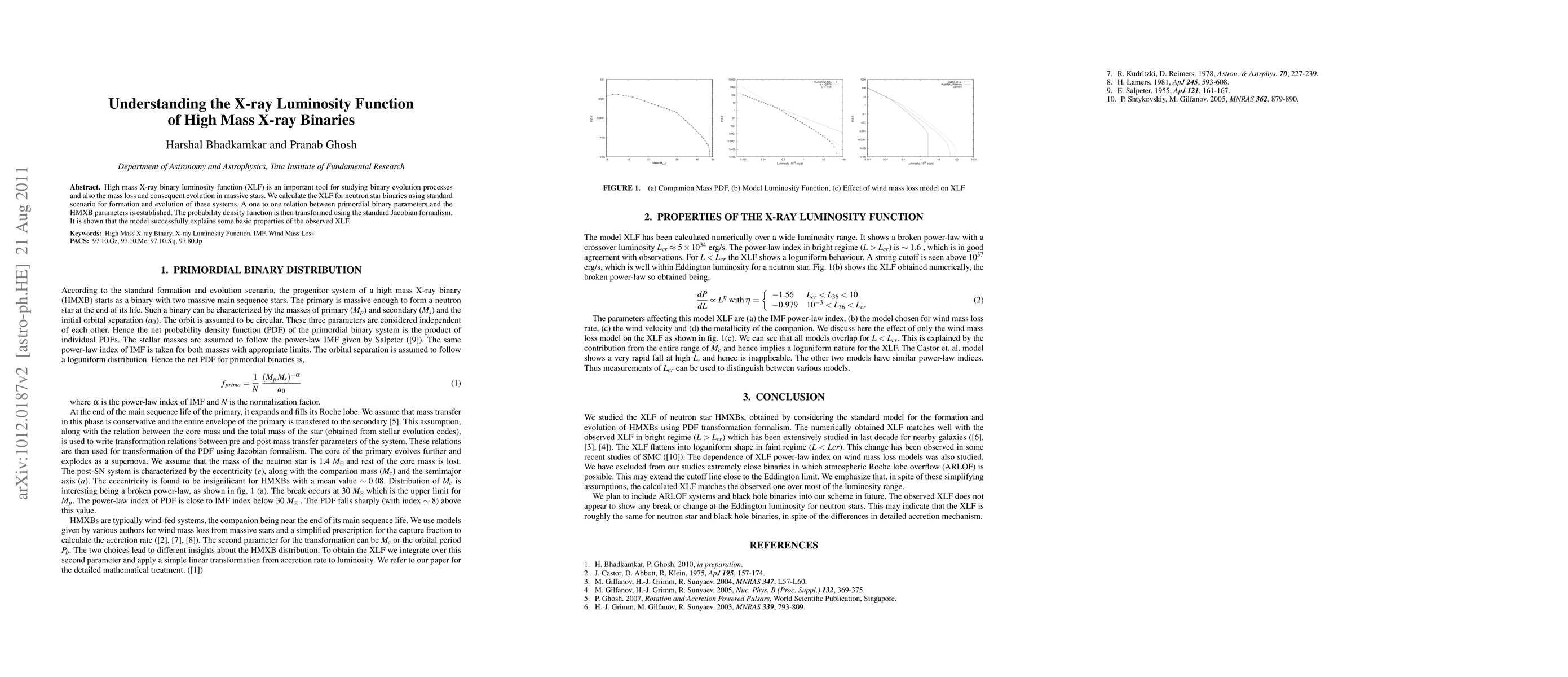 Researchers develop a model to explain the X-ray luminosity function of high mass X-ray binaries, shedding light on binary evolution processes and massive star evolution. The study successfully explains some basic properties of observed XLFs using standard scenarios for formation and evolution.