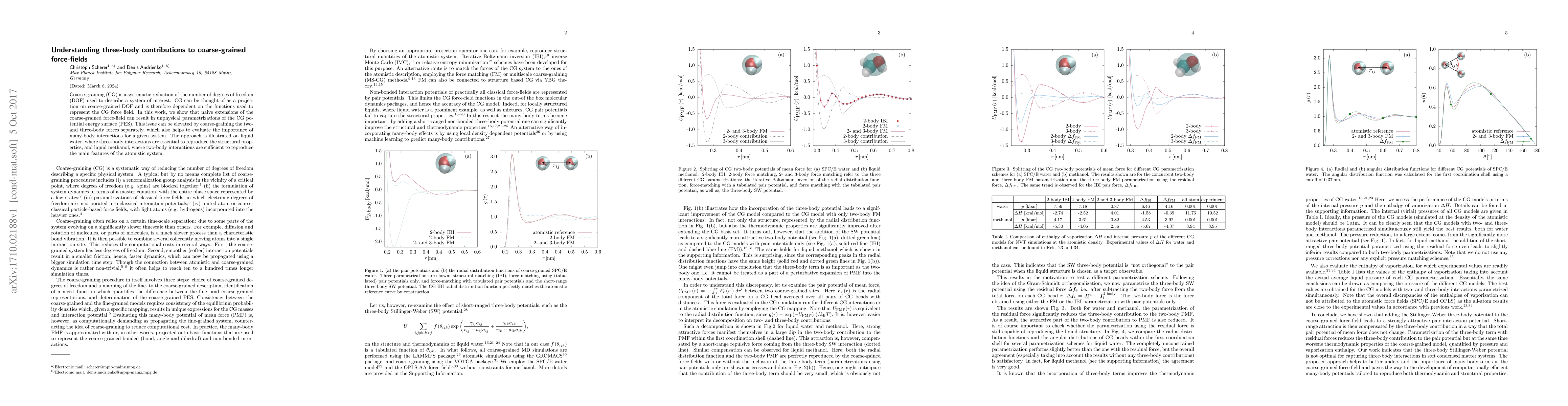 This paper investigates the impact of three-body interactions in coarse-grained force-fields, demonstrating that naive extensions can lead to unphysical potential energy surfaces. It proposes a method to separately coarse-grain two- and three-body forces, highlighting their significance in systems like liquid water and methanol.