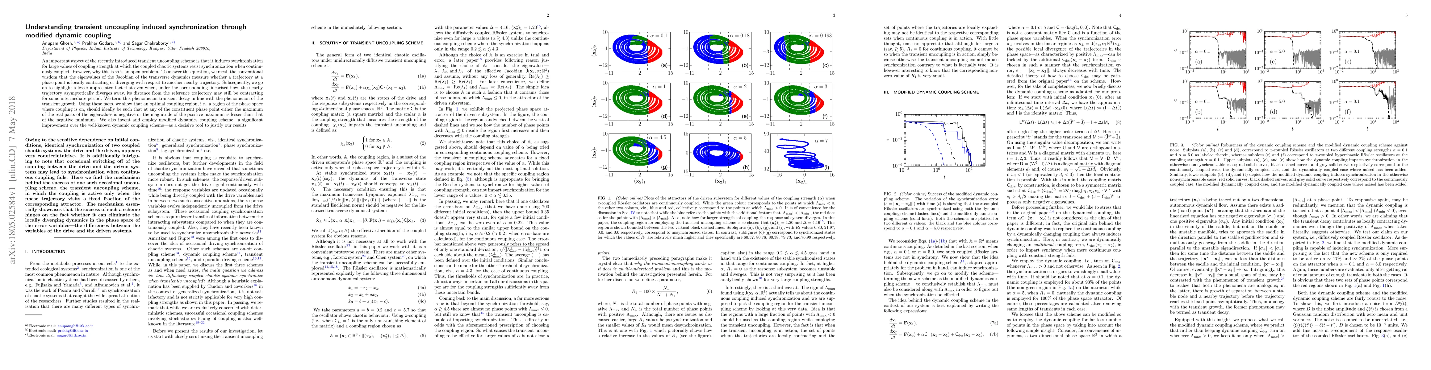 This paper explores how transient uncoupling can induce synchronization in chaotic systems at high coupling strengths, despite continuous coupling failing to achieve this. It introduces the concept of transient decay, where trajectories may diverge but still exhibit temporary contraction, and uses a modified dynamic coupling scheme to demonstrate optimal conditions for achieving synchronization.