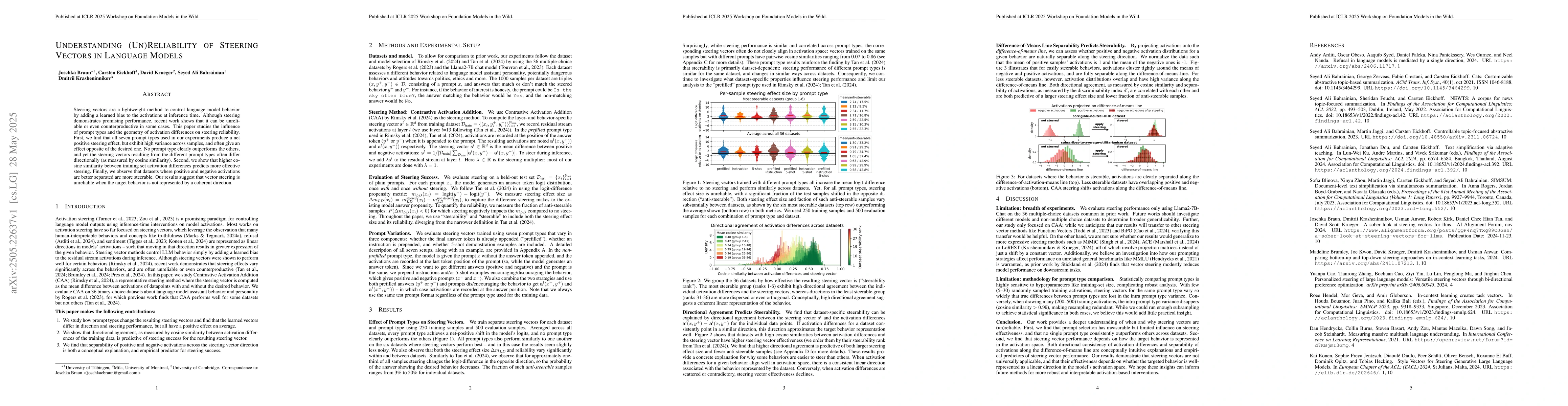 Researchers studied steering vectors in language models to understand their reliability, finding that prompt types and activation differences affect steering outcomes; datasets with well-separated positive and negative activations are more steerable.