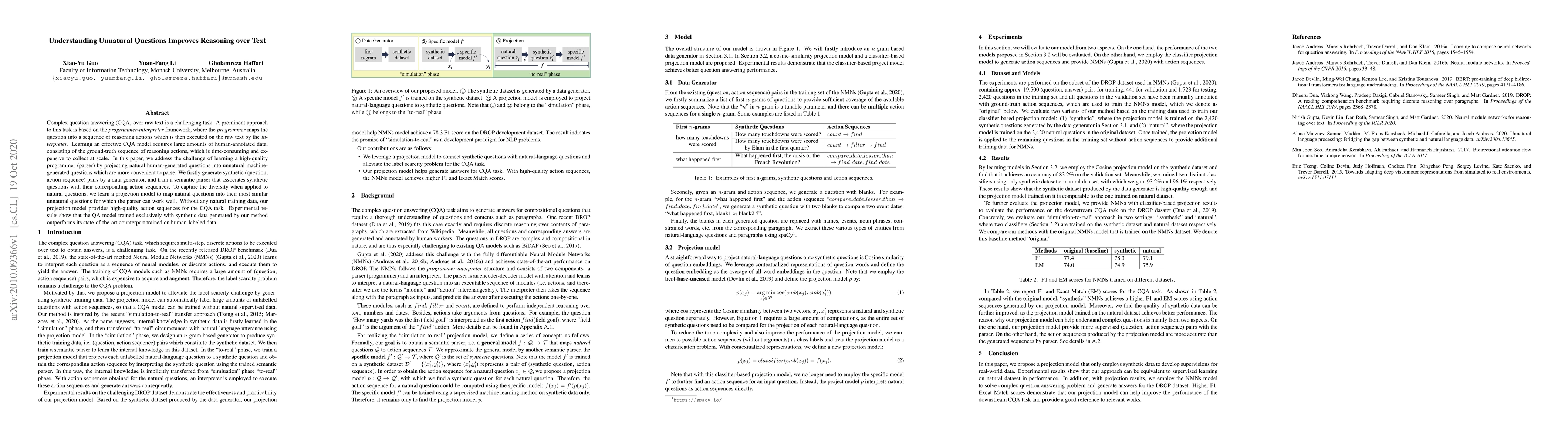 This paper proposes a method to improve question answering over text by projecting natural questions onto unnatural ones, enabling efficient parsing of action sequences without requiring large amounts of human-annotated data.