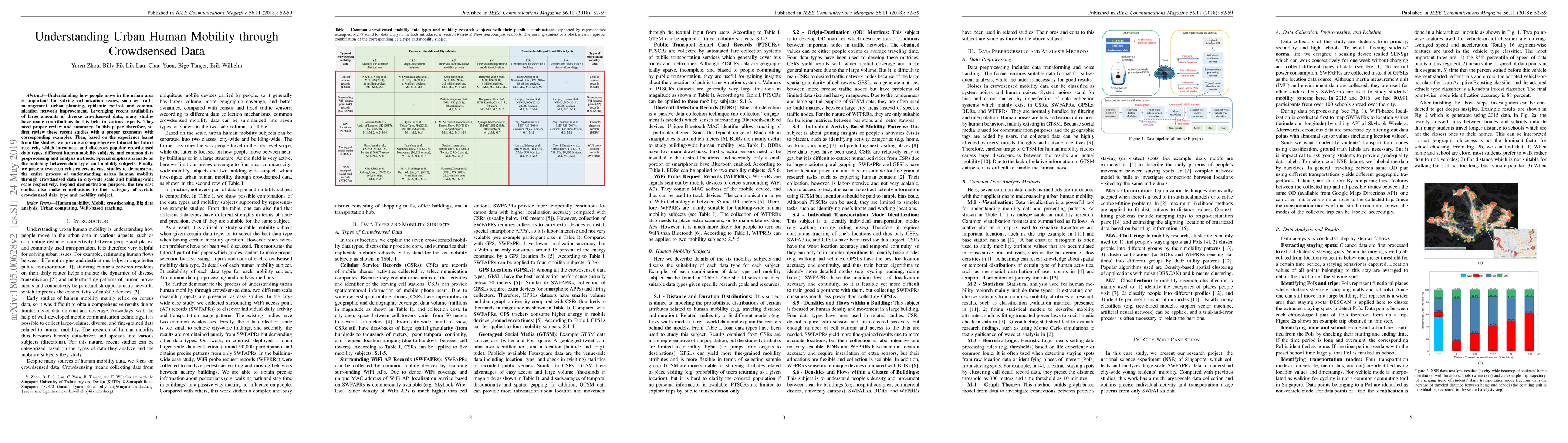 This paper reviews recent studies on urban human mobility using crowdsensed data, providing a taxonomy and tutorial for future research. It emphasizes data types, subjects, and analysis methods, and includes case studies demonstrating city-wide and building-wide mobility understanding.