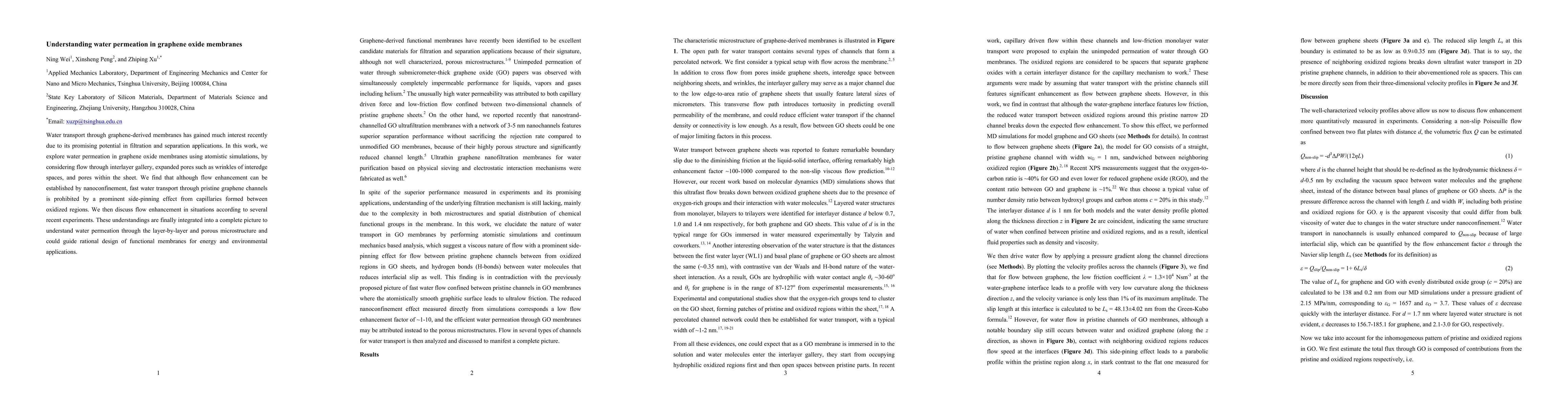 This paper uses atomistic simulations to investigate water permeation in graphene oxide membranes, identifying that while nanoconfinement enhances flow, a side-pinning effect hinders transport. The findings integrate experimental observations to provide insights for designing functional membranes for filtration and separation.