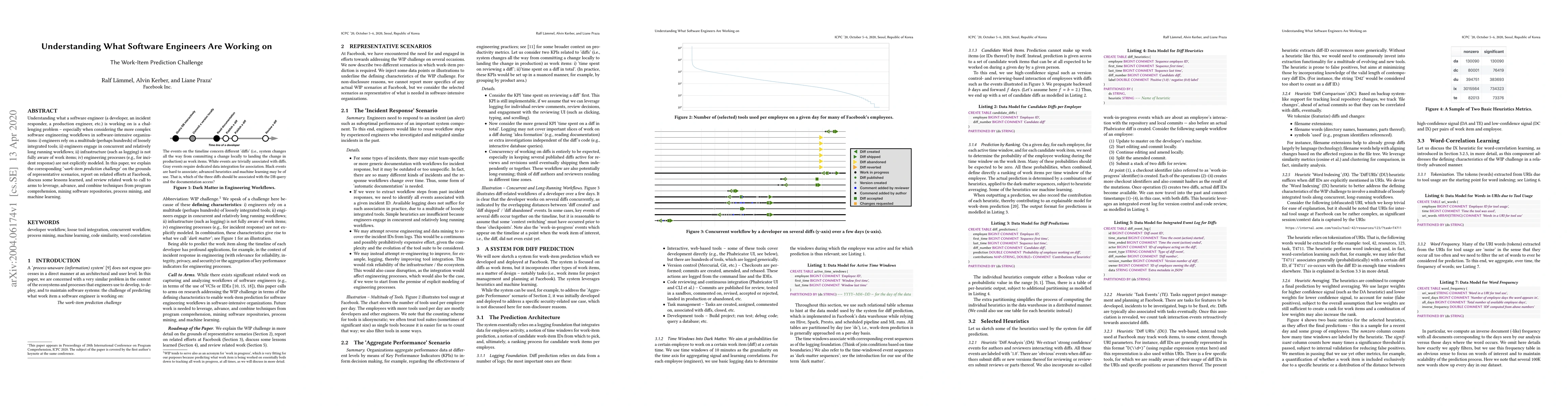 Understanding what a software engineer (a developer, an incident responder, a production engineer, etc.) is working on is a challenging problem -- especially when considering the more complex software engineering workflows in software-intensive organizations: i) engineers rely on a multitude (perhaps hundreds) of loosely integrated tools; ii) engineers engage in concurrent and relatively long running workflows; ii) infrastructure (such as logging) is not fully aware of work items; iv) engineering processes (e.g., for incident response) are not explicitly modeled. In this paper, we explain the corresponding 'work-item prediction challenge' on the grounds of representative scenarios, report on related efforts at Facebook, discuss some lessons learned, and review related work to call to arms to leverage, advance, and combine techniques from program comprehension, mining software repositories, process mining, and machine learning.