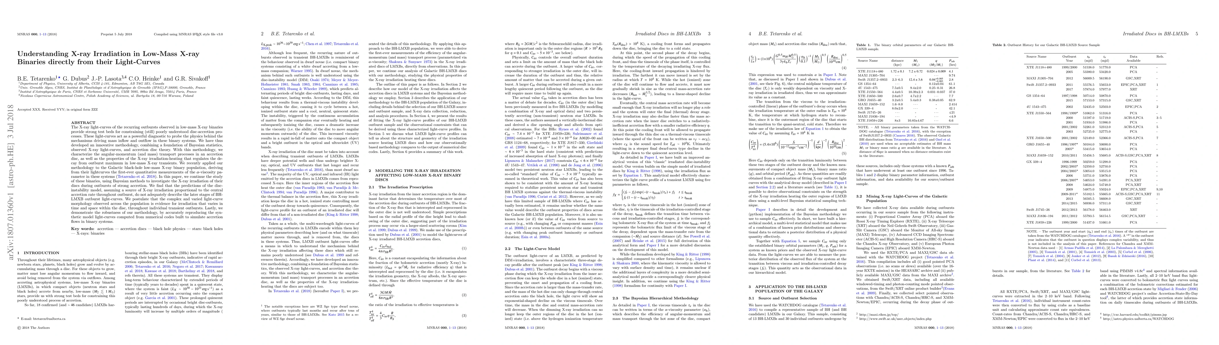 The X-ray light-curves of the recurring outbursts observed in low-mass X-ray binaries provide strong test beds for constraining (still) poorly understood disc-accretion processes. These light-curves act as a powerful diagnostic to probe the physics behind the mechanisms driving mass inflow and outflow in these binary systems. We have thus developed an innovative methodology, combining a foundation of Bayesian statistics, observed X-ray light-curves, and accretion disc theory. With this methodology, we characterize the angular-momentum (and mass) transport processes in an accretion disc, as well as the properties of the X-ray irradiation-heating that regulates the decay from outburst maximum in low-mass X-ray transients. We recently applied our methodology to the Galactic black-hole low-mass X-ray binary population, deriving from their lightcurves the first-ever quantitative measurements of the $\alpha$-viscosity parameter in these systems \citep{tetarenko2018}. In this paper, we continue the study of these binaries, using Bayesian methods to investigate the X-ray irradiation of their discs during outbursts of strong accretion. We find that the predictions of the disc-instability model, assuming a source of X-ray irradiation proportional to the central accretion rate throughout outburst, do not adequately describe the later stages of BH-LMXB outburst light-curves. We postulate that the complex and varied light-curve morphology observed across the population is evidence for irradiation that varies in time and space within the disc, throughout individual transient outbursts. Lastly, we demonstrate the robustness of our methodology, by accurately reproducing the synthetic model light-curves computed from numerical codes built to simulate accretion flows in binary systems.