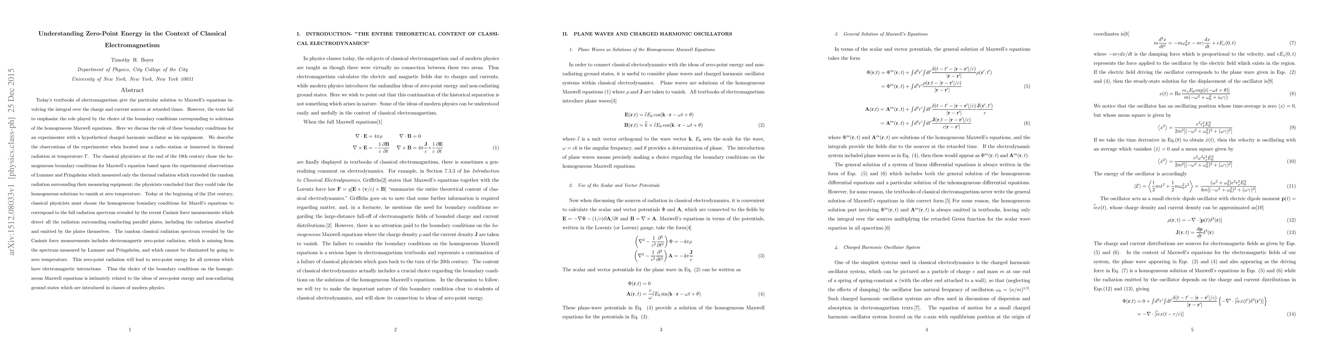 Today's textbooks of electromagnetism give the particular solution to Maxwell's equations involving the integral over the charge and current sources at retarded times. However, the texts fail to emphasize the role played by the choice of the boundary conditions corresponding to solutions of the homogeneous Maxwell equations. Here we discuss the role of these boundary conditions for an experimenter with a hypothetical charged harmonic oscillator as his equipment. We describe the observations of the experimenter when located near a radio station or immersed in thermal radiation at temperature T. The classical physicists at the end of the 19th century chose the homogeneous boundary conditions for Maxwell's equation based upon the experimental observations of Lummer and Pringsheim which measured only the thermal radiation which exceeded the random radiation surrounding their measuring equipment. Today at the beginning of the 21st century, classical physicists must choose the homogeneous boundary conditions for Maxell's equations to correspond to the full radiation spectrum revealed by the recent Casimir force measurements which detect all the radiation surrounding conducting parallel plates, including the radiation absorbed and emitted by the plates themselves. The random classical radiation spectrum revealed by the Casimir force measurements includes electromagnetic zero-point radiation, which is missing from the spectrum measured by Lummer and Pringsheim, and which cannot be eliminated by going to zero temperature. This zero-point radiation will lead to zero-point energy for all systems which have electromagnetic interactions. Thus the choice of the boundary conditions on the homogeneous Maxwell equations is intimately related to the ideas of zero-point energy and non-radiating ground states which are introduced in classes of modern physics.