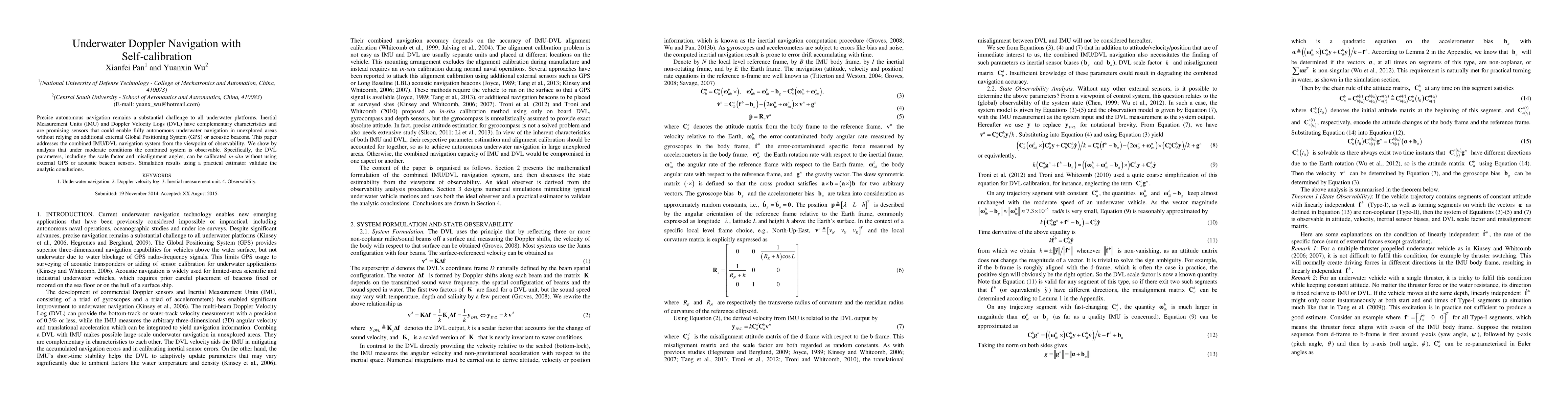 Researchers show that a combined IMU/DVL navigation system can enable fully autonomous underwater navigation without relying on GPS or acoustic beacons, under moderate conditions.
