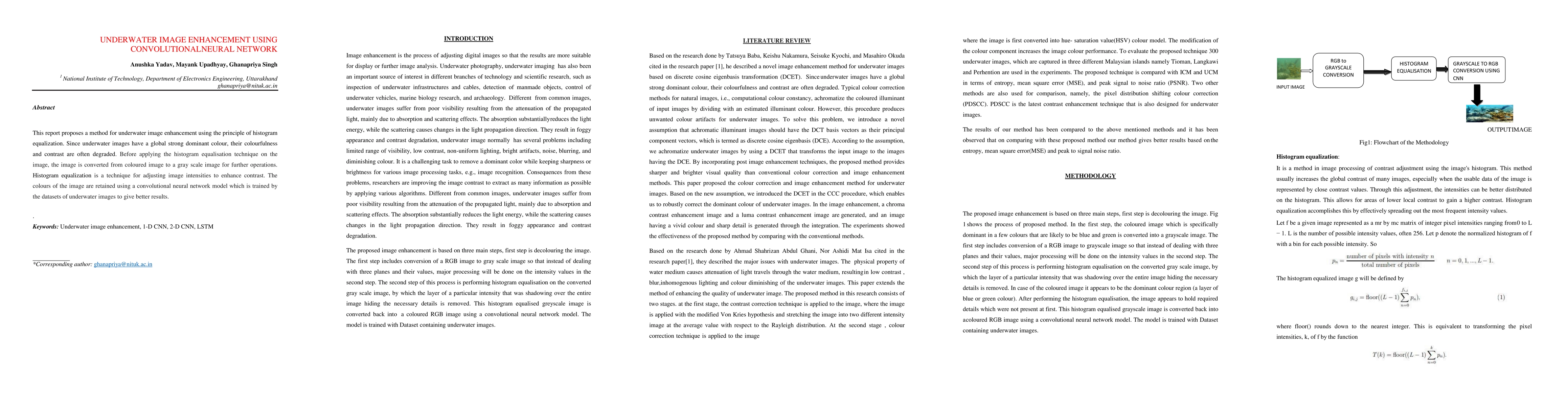 Researchers developed a method to enhance underwater images using a convolutional neural network that retains colors while improving contrast. The approach converts the image to grayscale and then applies histogram equalization for better results.