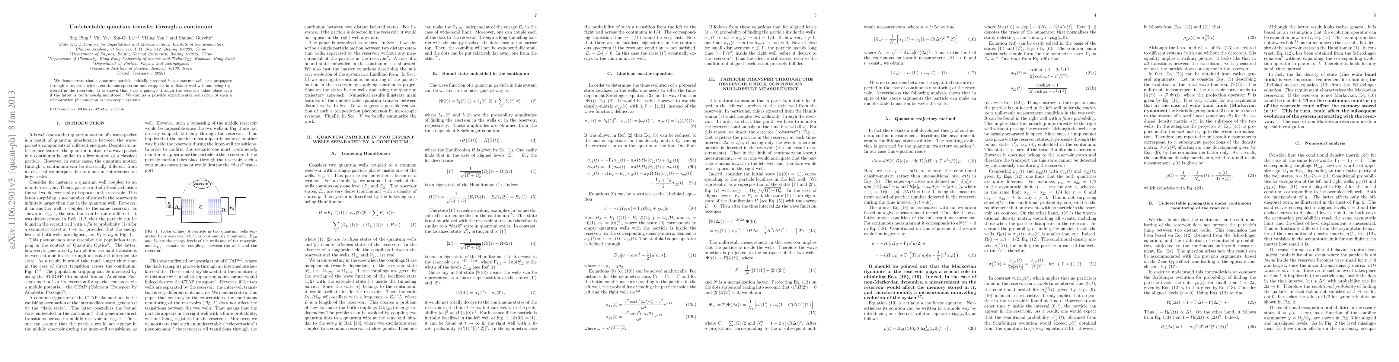 We demonstrate that a quantum particle, initially prepared in a quantum well, can propagate through a reservoir with a continuous spectrum and reappear in a distant well without being registered in the reservoir. It is shown that such a passage through the reservoir takes place even if the latter is {\em continuously} monitored. We discuss a possible experimental realization of such a teleportation phenomenon in mesoscopic systems.