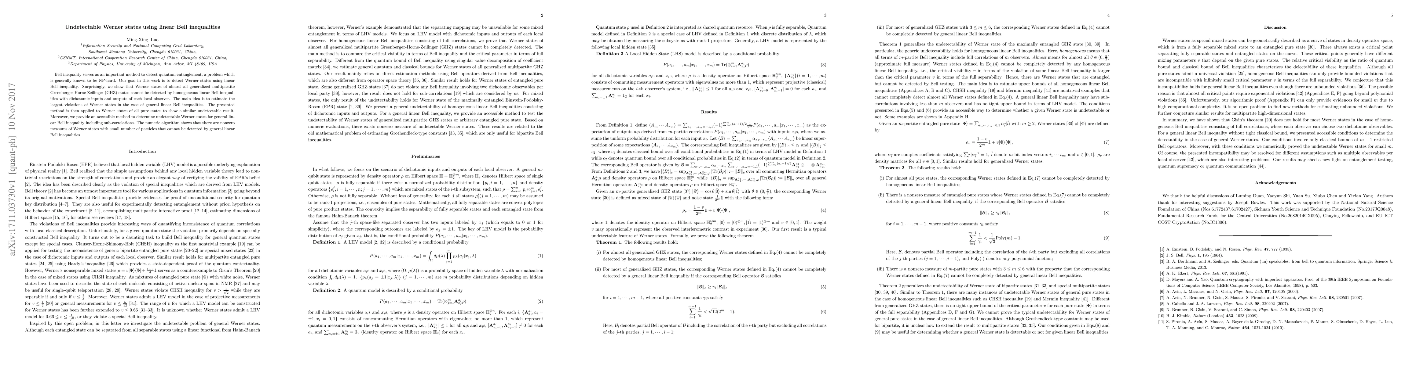 This paper demonstrates that Werner states, a class of entangled quantum states, cannot be detected using linear Bell inequalities with dichotomic inputs and outputs, despite their potential violation of Bell inequalities. The study provides a numerical algorithm to identify a nonzero measure of such undetectable Werner states in multipartite systems.