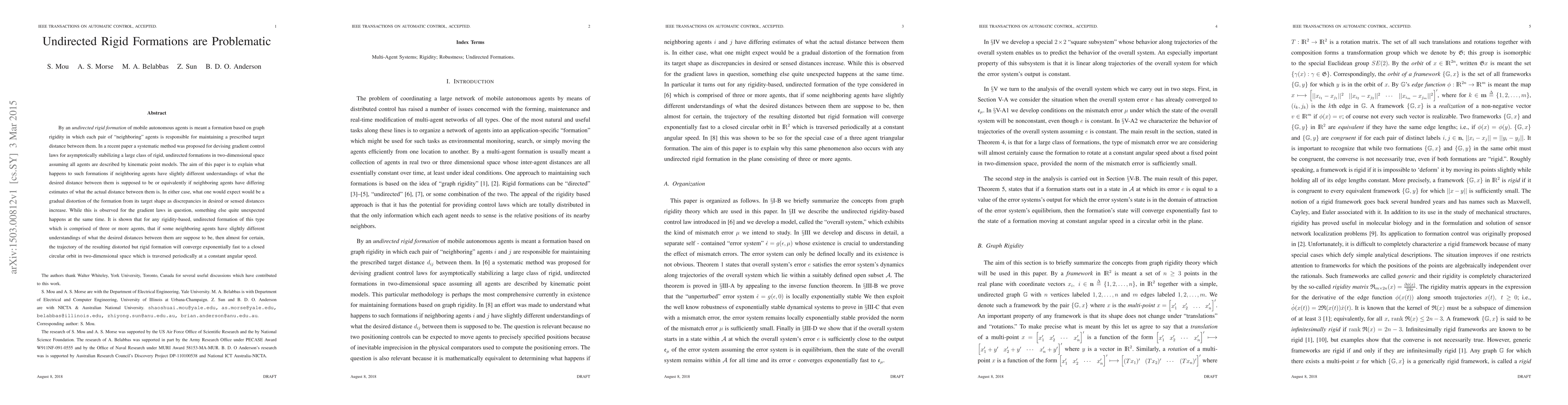 This paper investigates the stability of undirected rigid formations of mobile agents, revealing that despite gradual distortion due to differing distance estimates, formations with three or more agents will almost certainly converge exponentially fast to a periodic circular orbit in two-dimensional space.
