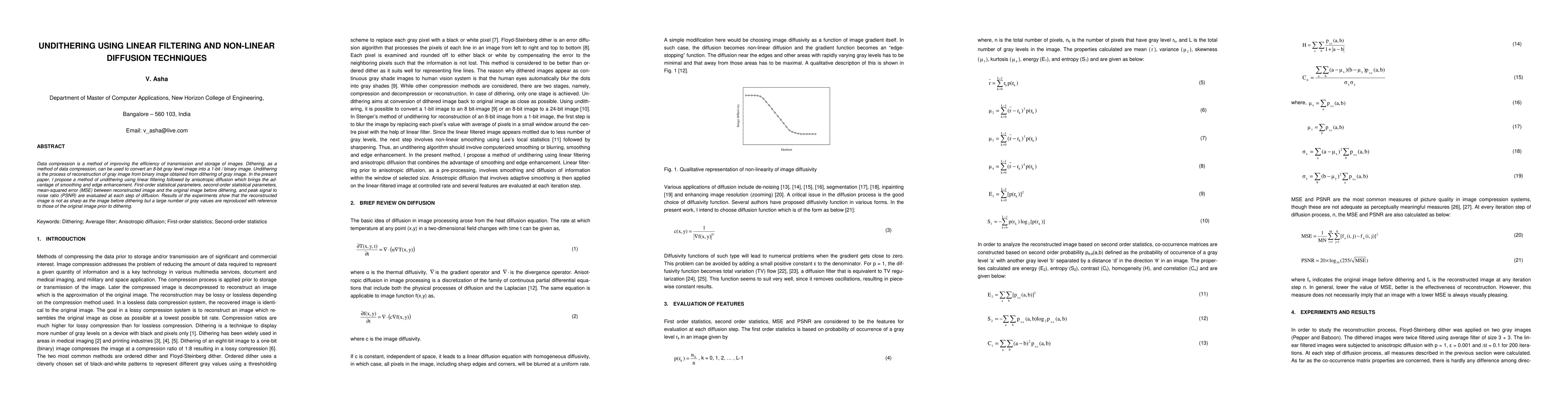 This paper proposes a method for undithering images using linear filtering and anisotropic diffusion, achieving good reproduction of gray values but slightly reduced sharpness.