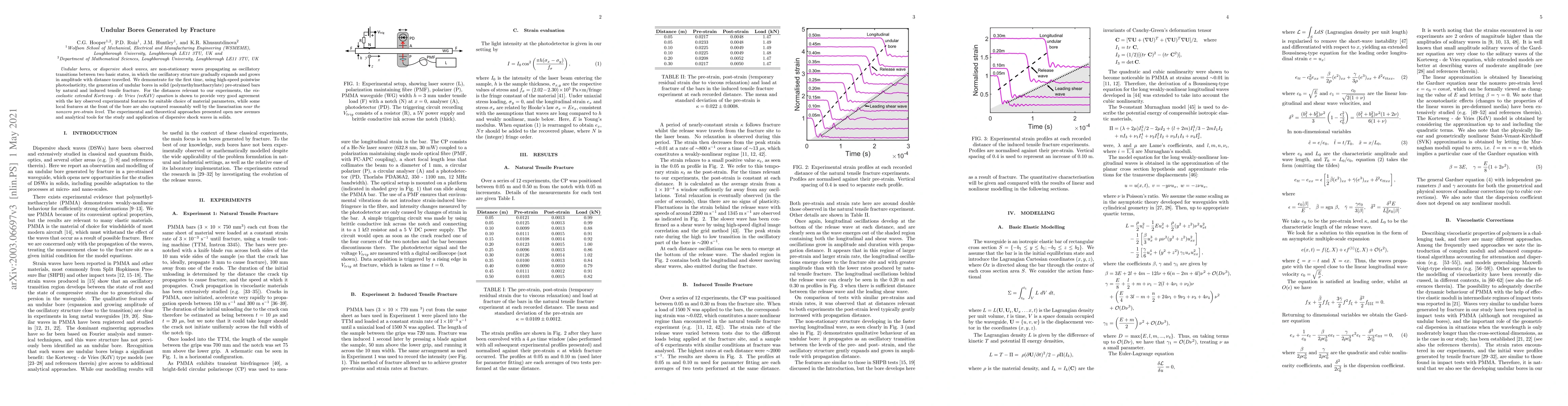 This paper demonstrates the generation of undular bores in pre-strained polymethylmethacrylate bars via tensile fracture, using high-speed photoelasticity. The viscoelastic extended Korteweg-de Vries equation effectively models the observed phenomena, offering new analytical tools for understanding dispersive shock waves in solids.