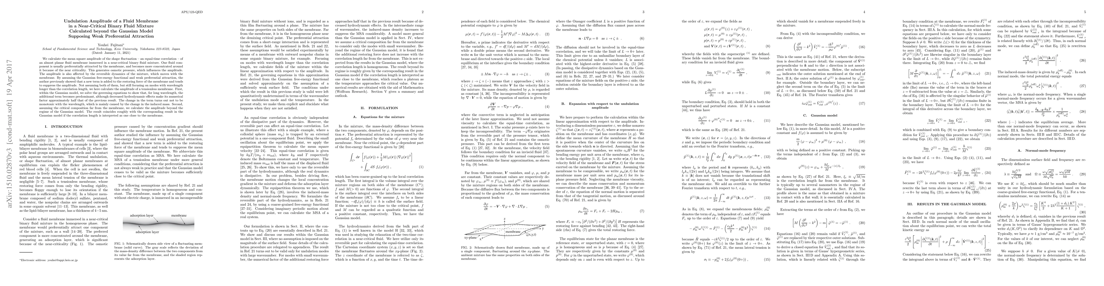 This paper calculates the mean square amplitude of shape fluctuations in a fluid membrane in a near-critical binary fluid mixture, beyond the Gaussian model, considering weak preferential attraction. It finds that the amplitude is influenced by osmotic pressure and reversible dynamics, with a non-monotonic change in the additional restoring force term due to induced mass variations.