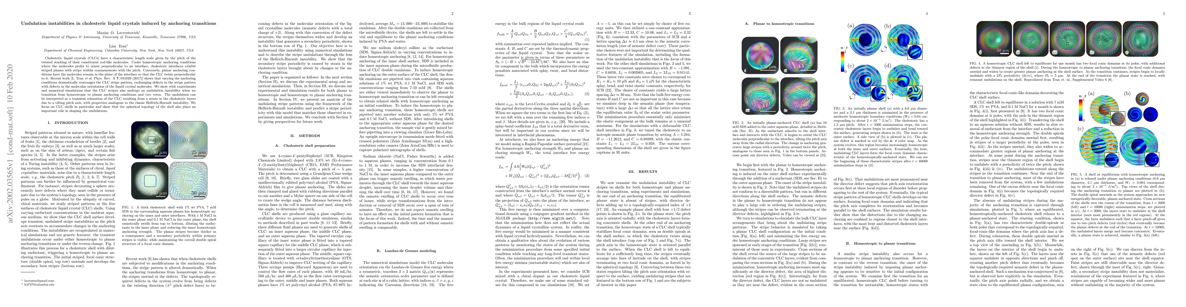 This paper investigates undulation instabilities in cholesteric liquid crystals (CLCs) induced by transitions between homeotropic and planar anchoring conditions. Experiments and simulations reveal that these transitions lead to a Helfrich-Hurault-like instability, with the spherical topology of CLC shells significantly influencing the undulation patterns.