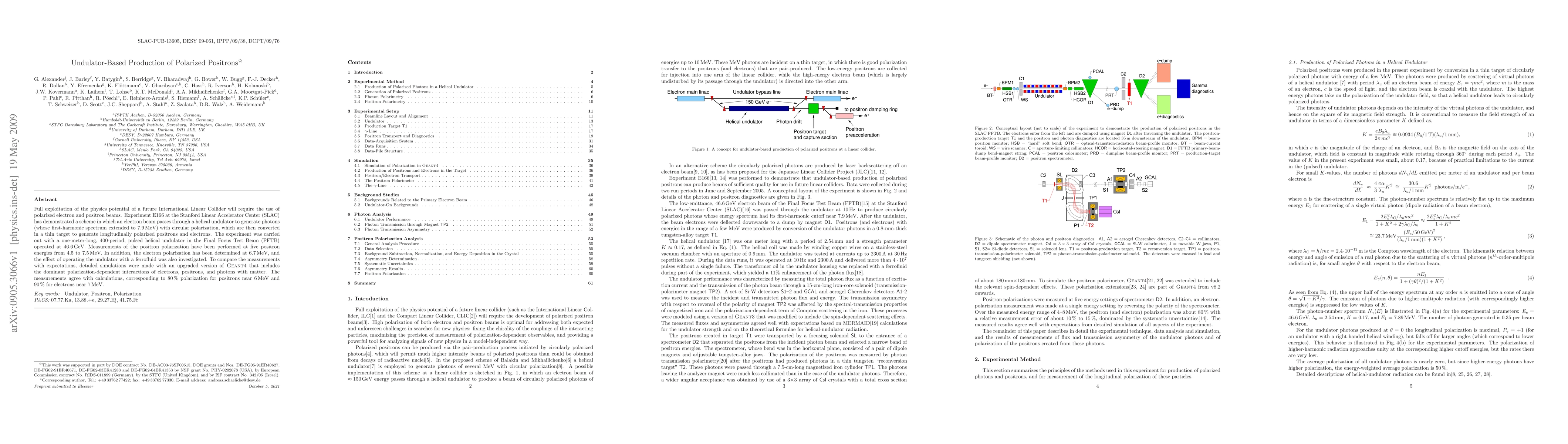 Experiment E166 at SLAC demonstrated a method to generate longitudinally polarized positrons using a helical undulator to produce circularly polarized photons, achieving 80% polarization for positrons at 6 MeV. Detailed simulations using an upgraded Geant4 model confirmed the experimental results.