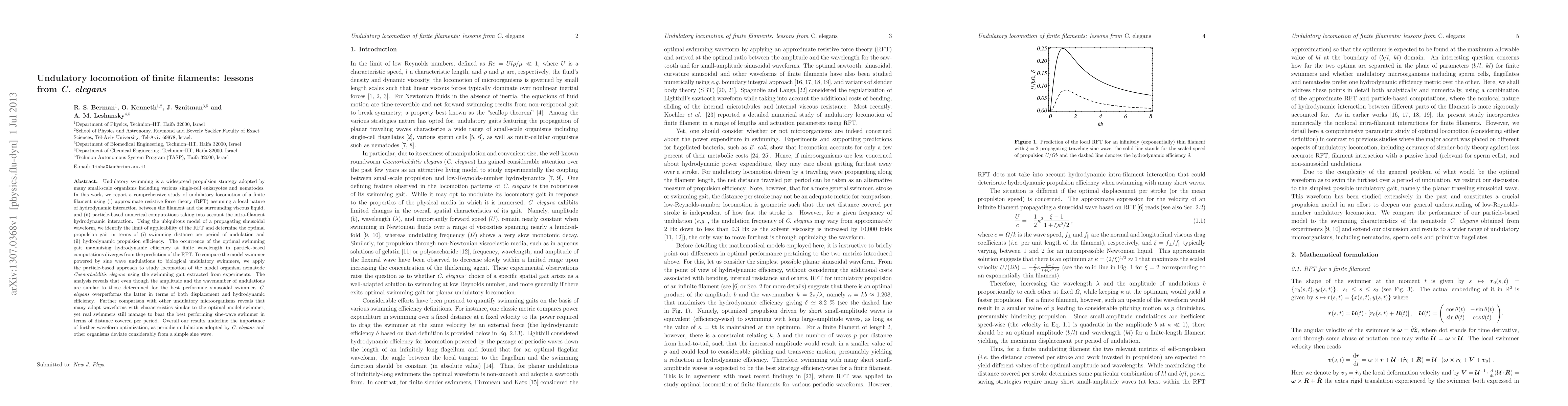 This study investigates the undulatory locomotion of finite filaments using resistive force theory and particle-based simulations, finding that the optimal swimming gait for maximum efficiency differs from theoretical predictions. The analysis of C. elegans' locomotion reveals superior performance compared to a model sine wave swimmer, highlighting the importance of waveform optimization beyond simple sinusoidal patterns.