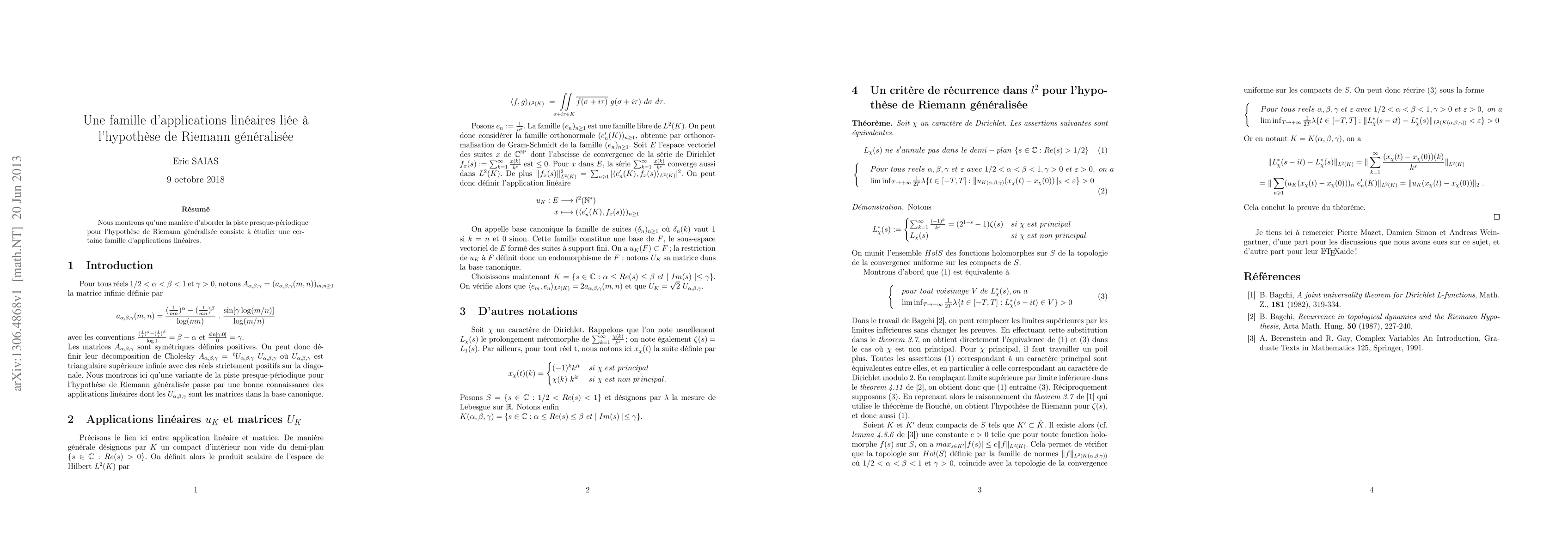 We exhibit a family of linear operators related to the almost-periodic approach for the generalized Riemann hypothesis.