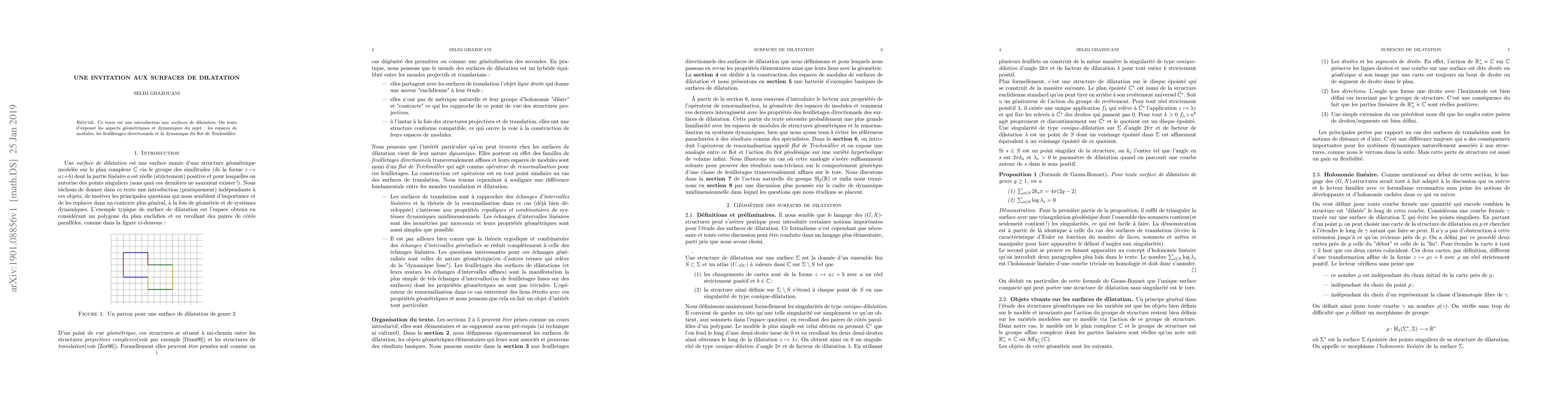 This text is an introduction to dilation surfaces. We attempt to expose some geometric and dynamical aspects of the subject: moduli spaces, directional foliations and the Teichm\"uller flow.