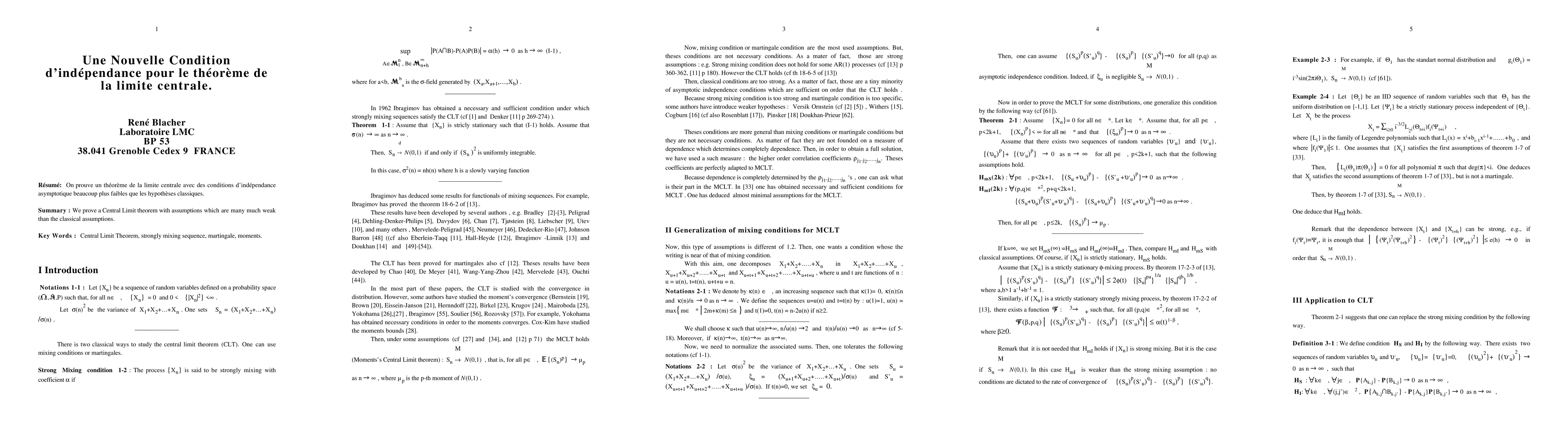 We prove a central limit theorem with aassumptions which are many weak than classical conditions