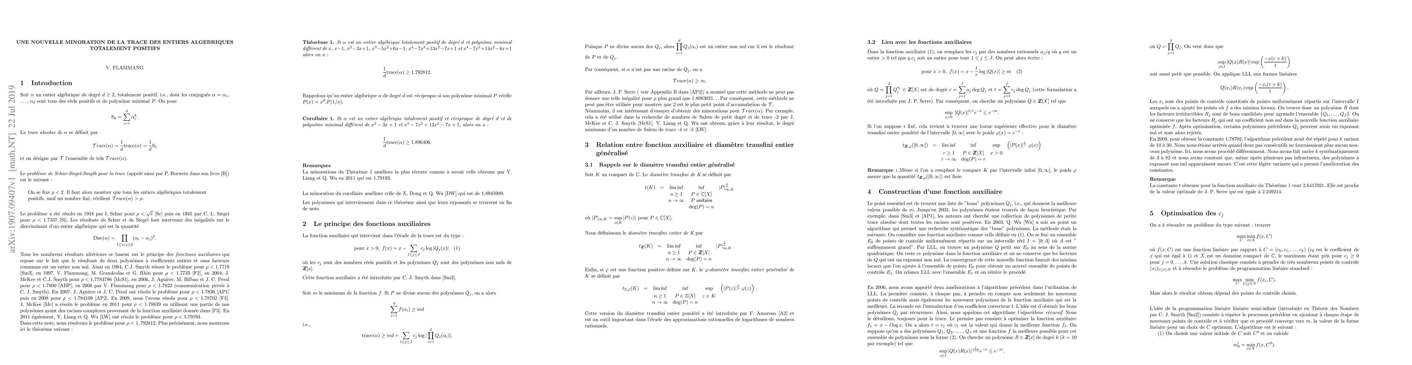 We explain how a slight variant in the use of our recursive algorithm leads to improve the known lower bounds for the absolute trace of a totally positive algebraic integer. We also link the absolute trace of a totally positive algebraic integer and the absolute trace of a totally positive reciprocal integer.