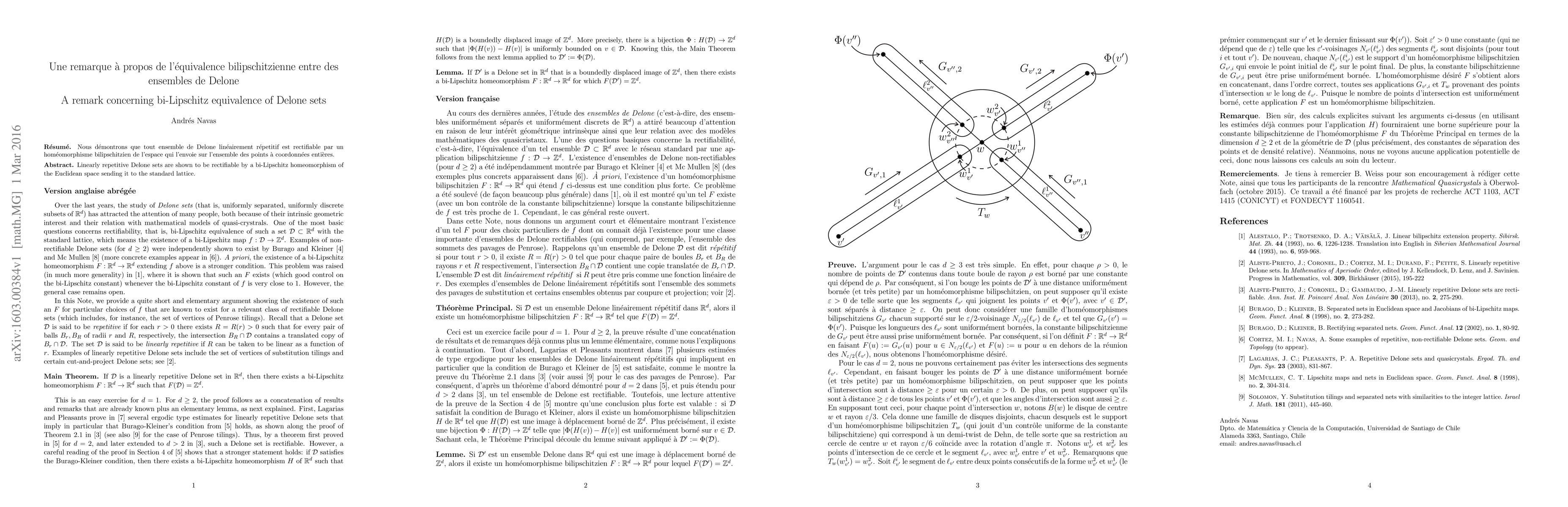 Summary: The paper demonstrates that linearly repetitive Delone sets can be rectified via bi-Lipschitz homeomorphisms in Euclidean space, mapping them to the integer coordinate points set. This establishes a bi-Lipschitz equivalence between such sets.