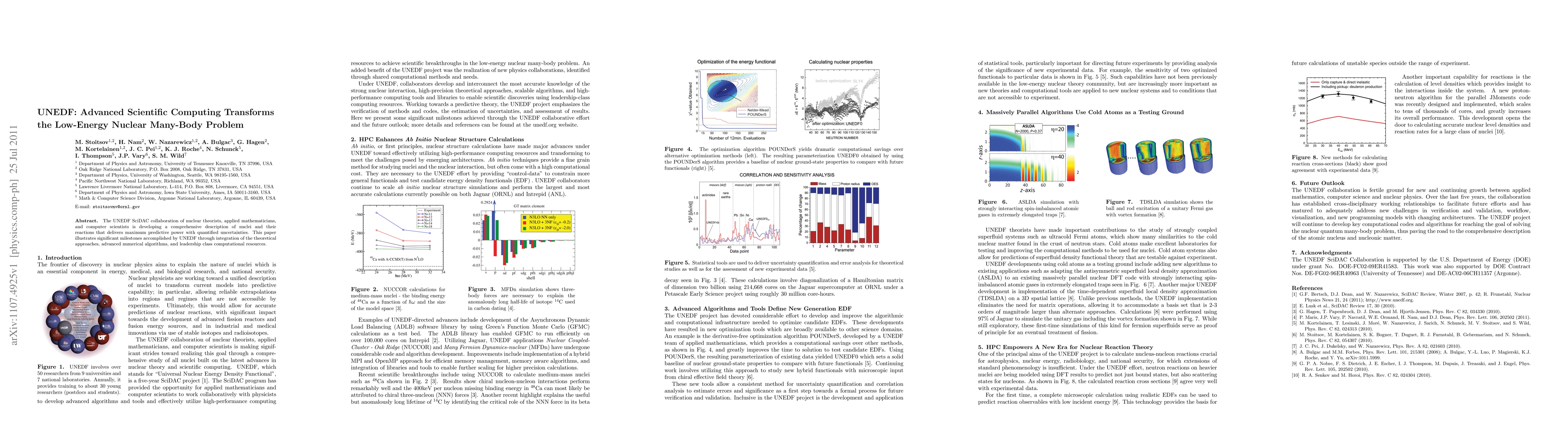 The UNEDF SciDAC collaboration has developed a comprehensive predictive model for low-energy nuclear many-body problems, integrating theoretical approaches, advanced numerical algorithms, and high-performance computing to quantify uncertainties. This work marks significant advancements in nuclear theory and computational methods.