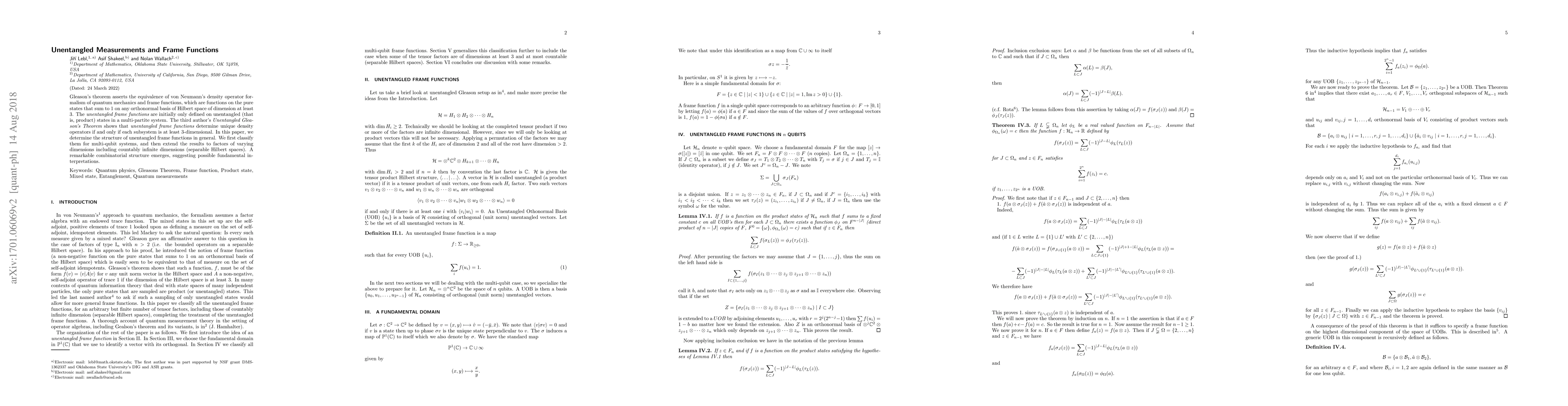 This paper explores the structure of unentangled frame functions in quantum mechanics, showing that they uniquely determine density operators if subsystems are at least 3-dimensional. The authors classify these functions for multi-qubit systems and extend the findings to various dimensions, revealing a notable combinatorial structure with potential fundamental implications.