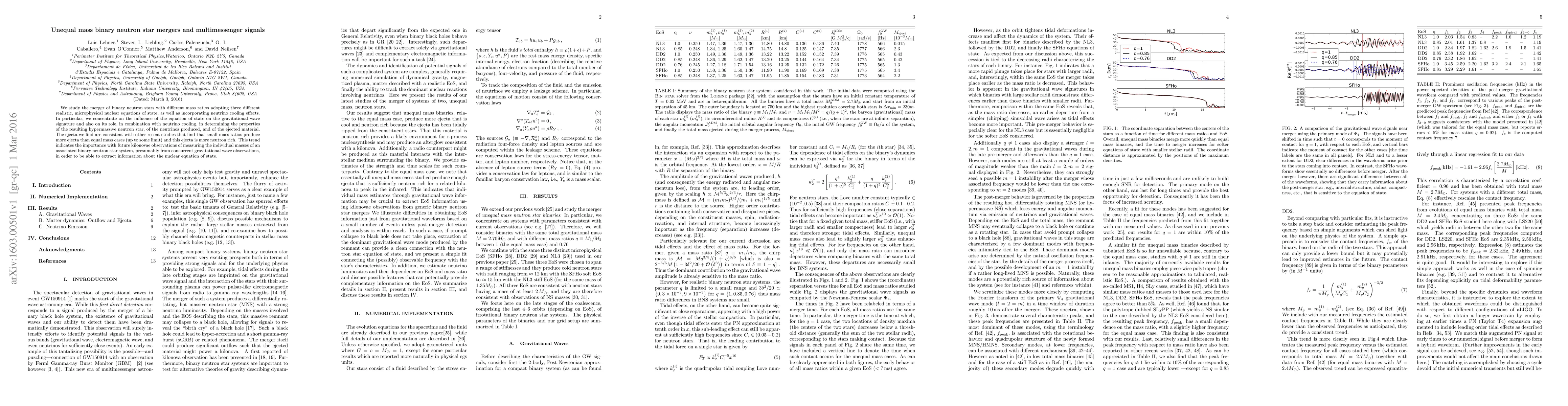 This study examines unequal mass binary neutron star mergers using various nuclear equations of state and neutrino cooling effects. Key findings indicate that unequal mass ratios produce more ejecta, which is more neutron-rich, suggesting that precise mass measurements from gravitational wave observations could reveal insights into the nuclear equation of state.