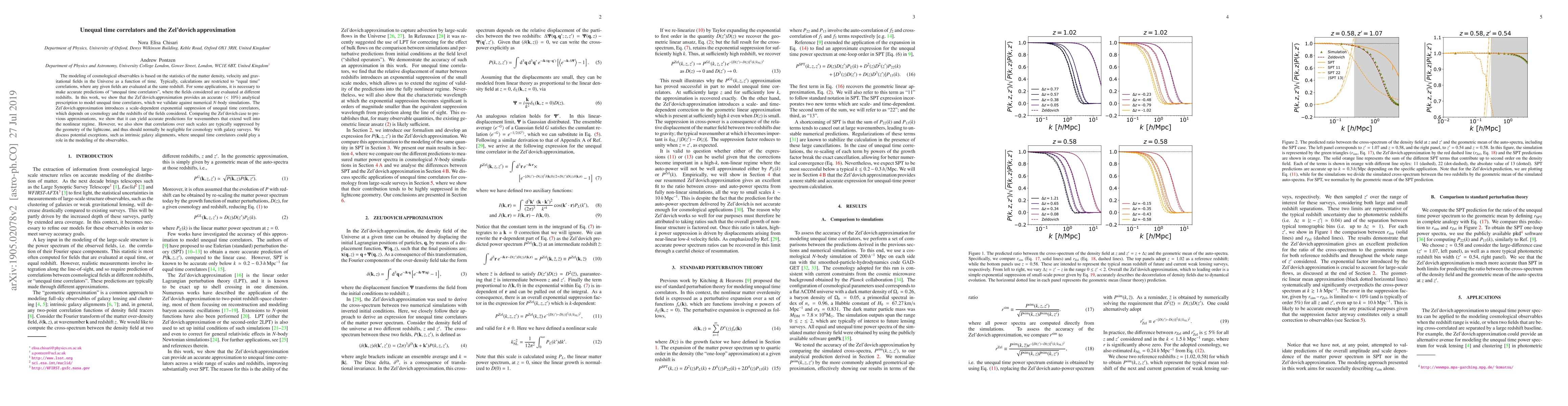 The modeling of cosmological observables is based on the statistics of the matter density, velocity and gravitational fields in the Universe as a function of time. Typically, calculations are restricted to equal time correlations, where any given fields are evaluated at the same redshift. For some applications, it is necessary to make accurate predictions of unequal time correlators, where the fields considered are evaluated at different redshifts. In this work, we show that the Zeldovich approximation provides an accurate (<10%) analytical prescription to model unequal time correlators, which we validate against numerical N-body simulations. The Zeldovich approximation introduces a scale-dependent exponential suppression of unequal time correlators, which depends on cosmology and the redshifts of the fields considered. Comparing the Zeldovich case to previous approximations, we show that it can yield accurate predictions for wavenumbers that extend well into the nonlinear regime. However, we also show that correlations over such scales are typically suppressed by the geometry of the lightcone, and thus should normally be negligible for cosmology with galaxy surveys. We discuss potential exceptions, such as intrinsic galaxy alignments, where unequal time correlators could play a role in the modeling of the observables.
