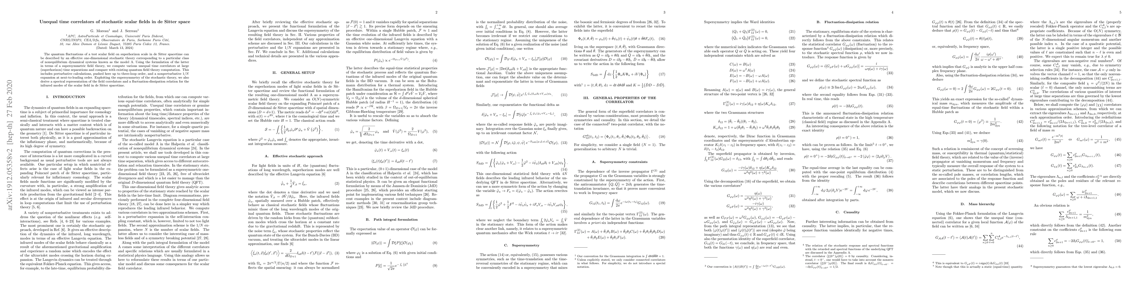 This paper investigates quantum fluctuations of a scalar field in de Sitter space using an effective stochastic theory, deriving unequal-time correlators through perturbative and nonperturbative methods. It reveals insights into the dynamics and spectral properties of the field via supersymmetry.
