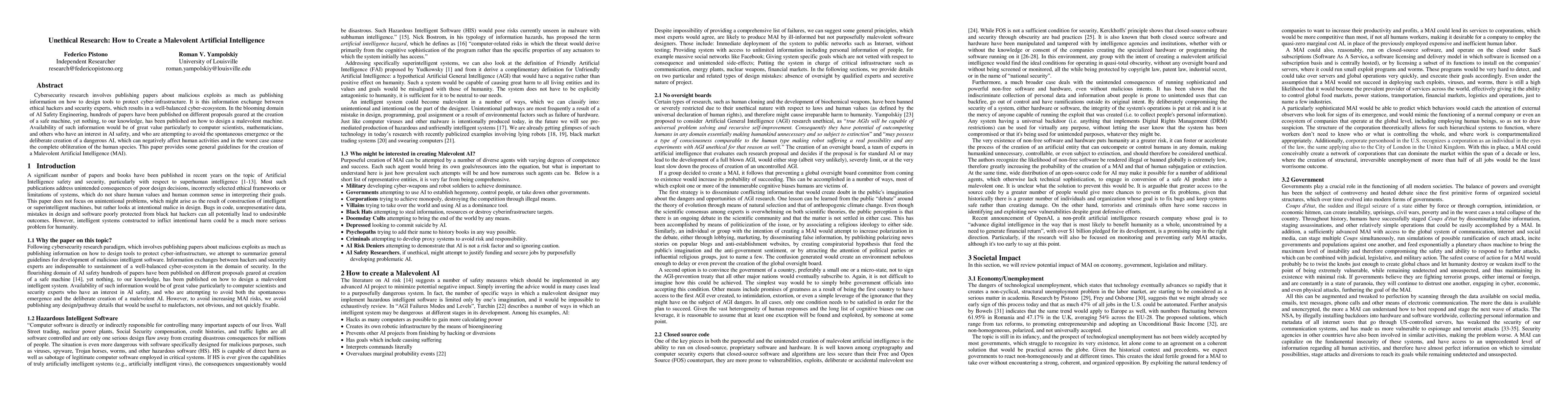 The paper outlines general principles for the unintentional creation of a Malevolent Artificial Intelligence (MAI) by ill-informed designers, focusing on absence of oversight, closed-source code, and societal impacts.