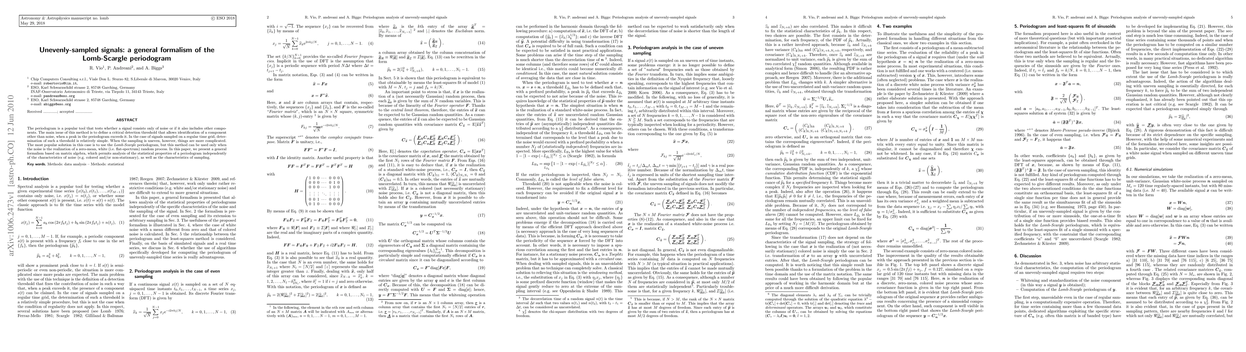 This paper introduces a new general formalism for the Lomb-Scargle periodogram, enabling analysis of unevenly-sampled signals and accommodating various noise characteristics, unlike traditional methods limited to white noise. The proposed matrix algebra-based approach simplifies the determination of critical detection thresholds for signal components beyond noise.
