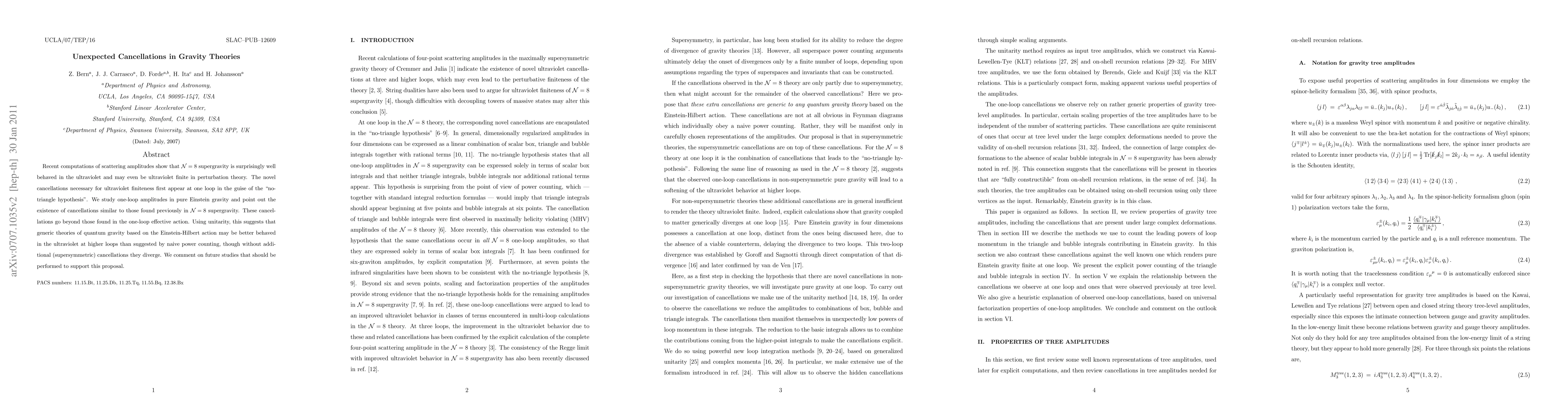 This paper reveals unexpected ultraviolet cancellations in N=8 supergravity and pure Einstein gravity at one-loop level, suggesting that quantum gravity theories based on the Einstein-Hilbert action might exhibit better ultraviolet behavior than previously thought, though they still diverge without additional cancellations. Future studies are suggested to further investigate this phenomenon.