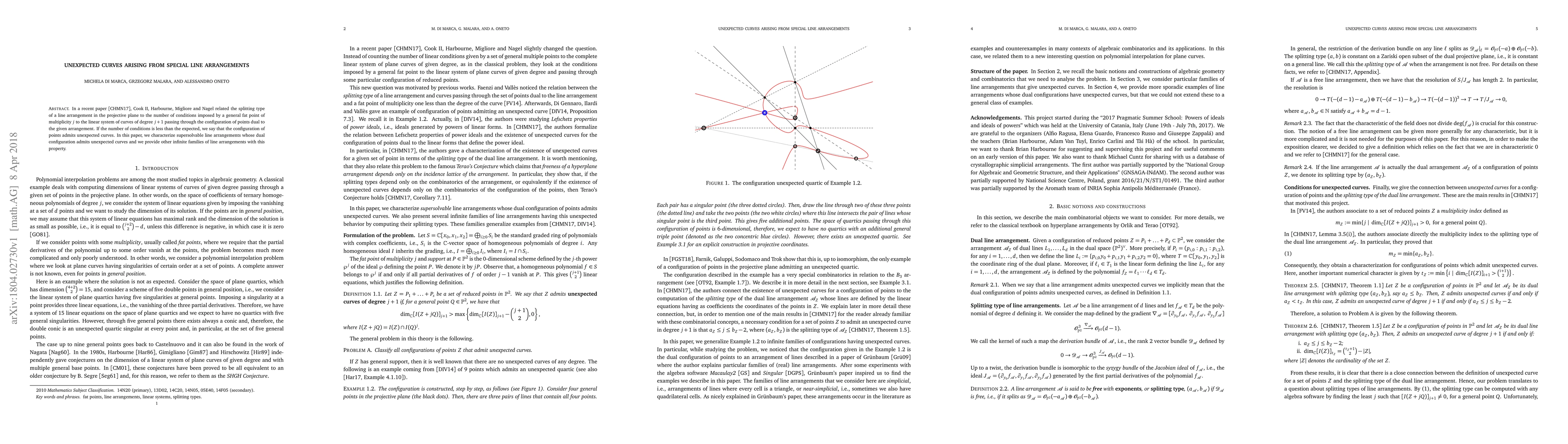 In a recent paper arXiv:1602.02300v2, Cook II, Harbourne, Migliore and Nagel related the splitting type of a line arrangement in the projective plane to the number of conditions imposed by a general fat point of multiplicity $j$ to the linear system of curves of degree $j+1$ passing through the configuration of points dual to the given arrangement. If the number of conditions is less than the expected, we say that the configuration of points admits unexpected curves. In this paper, we characterize supersolvable line arrangements whose dual configuration admits unexpected curves and we provide other infinite families of line arrangements with this property.