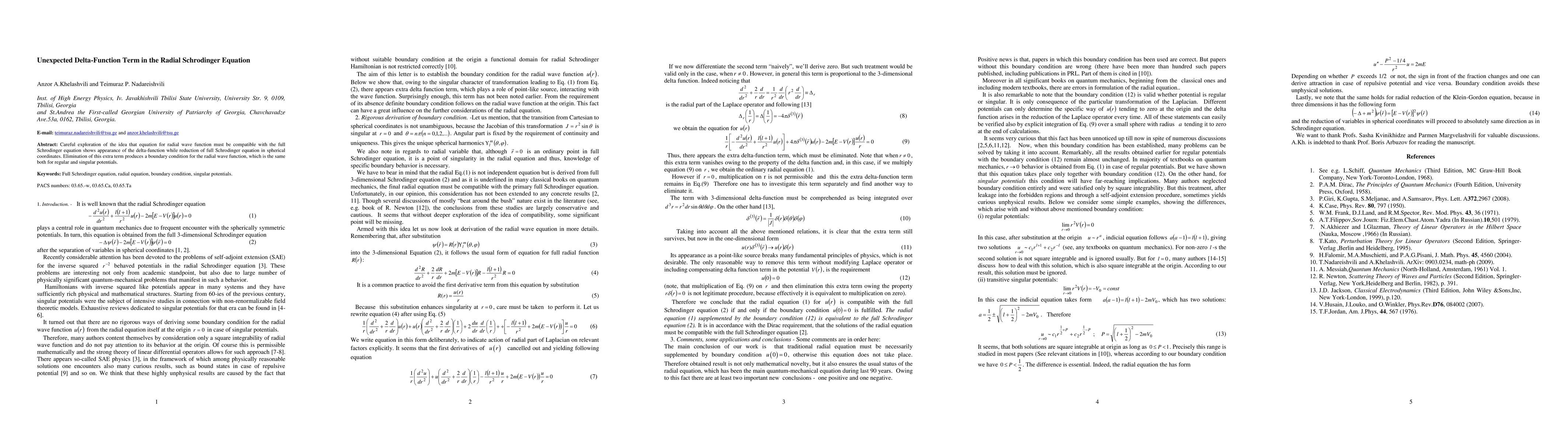 This paper investigates the emergence of a delta-function term when reducing the full Schrödinger equation to its radial form in spherical coordinates. The presence of this term necessitates a new boundary condition for the radial wave function, applicable to both regular and singular potentials.