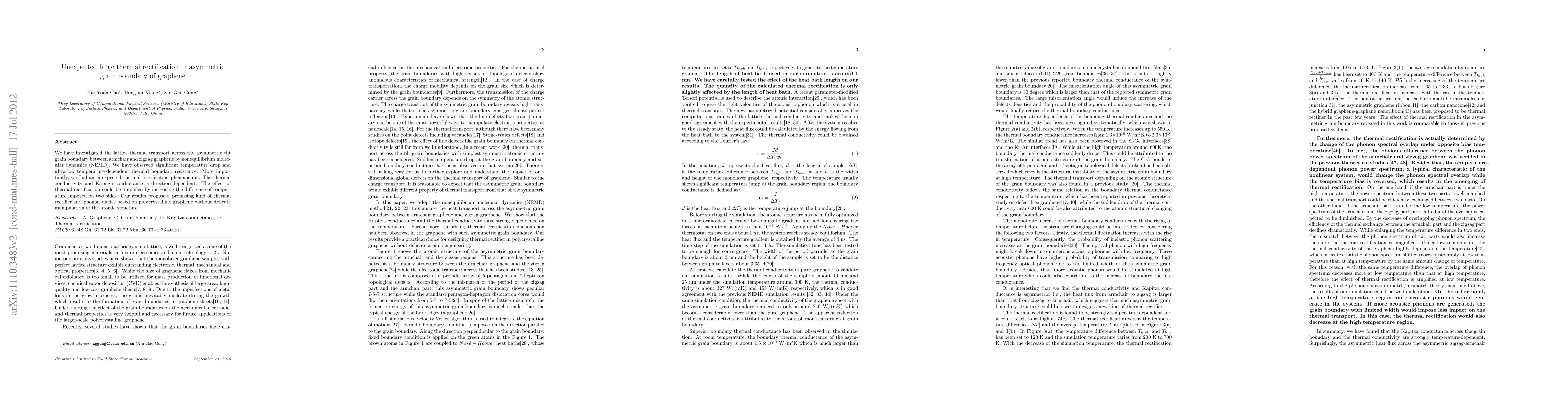 This study reveals unexpected large thermal rectification in asymmetric grain boundaries between armchair and zigzag graphene, exhibiting significant temperature drop and low thermal boundary resistance. The findings suggest potential for creating phonon diodes and thermal rectifiers using polycrystalline graphene.