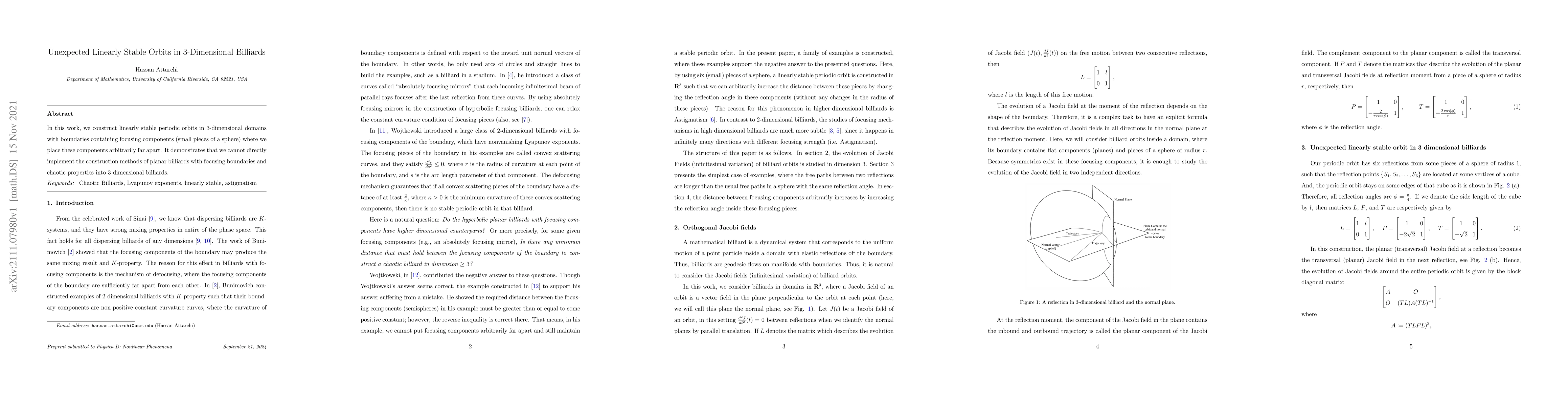 This paper constructs linearly stable periodic orbits in $3$-dimensional billiards with focusing boundary components, showing that the methods used for chaotic planar billiards do not directly apply to the $3$-dimensional case.