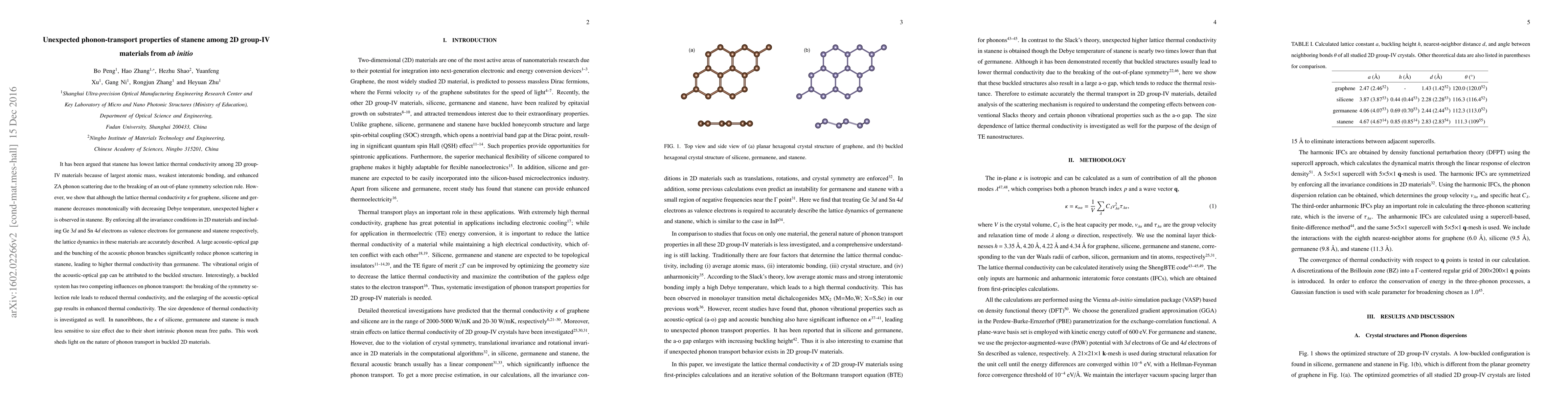 Stanene, despite its large atomic mass and weaker interatomic bonding, exhibits unexpectedly higher lattice thermal conductivity compared to graphene, silicene, and germanene due to a large acoustic-optical gap and reduced phonon scattering. The study highlights the complex interplay between symmetry selection rules and phonon transport in buckled 2D materials.