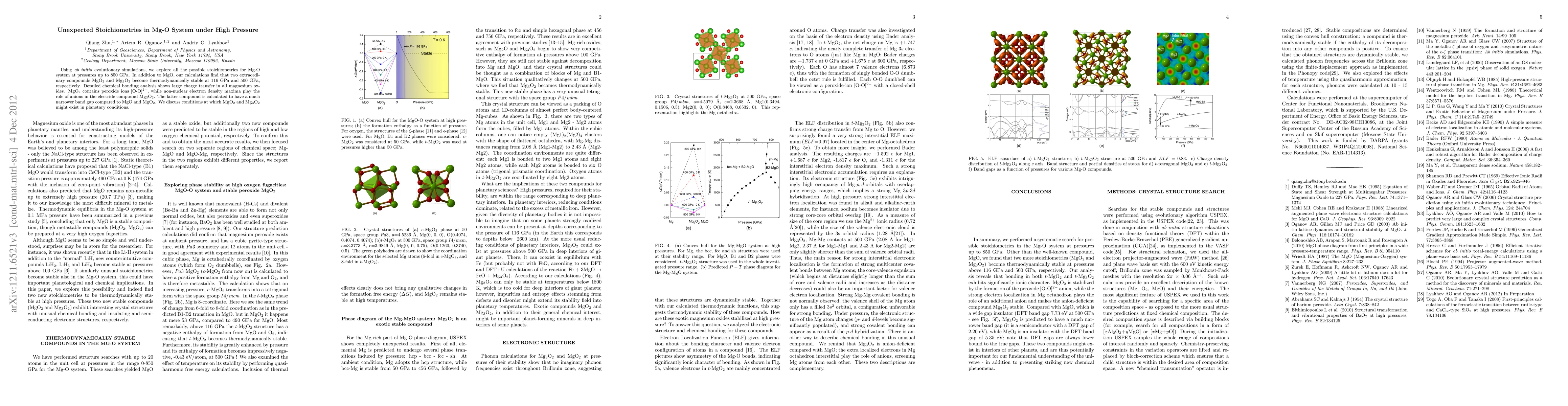 This study reveals unexpected stoichiometries in the Mg-O system under high pressure, identifying MgO2 and Mg3O2 as thermodynamically stable compounds at 116 GPa and 500 GPa, respectively, alongside MgO. Detailed analysis shows significant charge transfer and unique bonding characteristics, including peroxide ions in MgO2 and electride properties in Mg3O2.