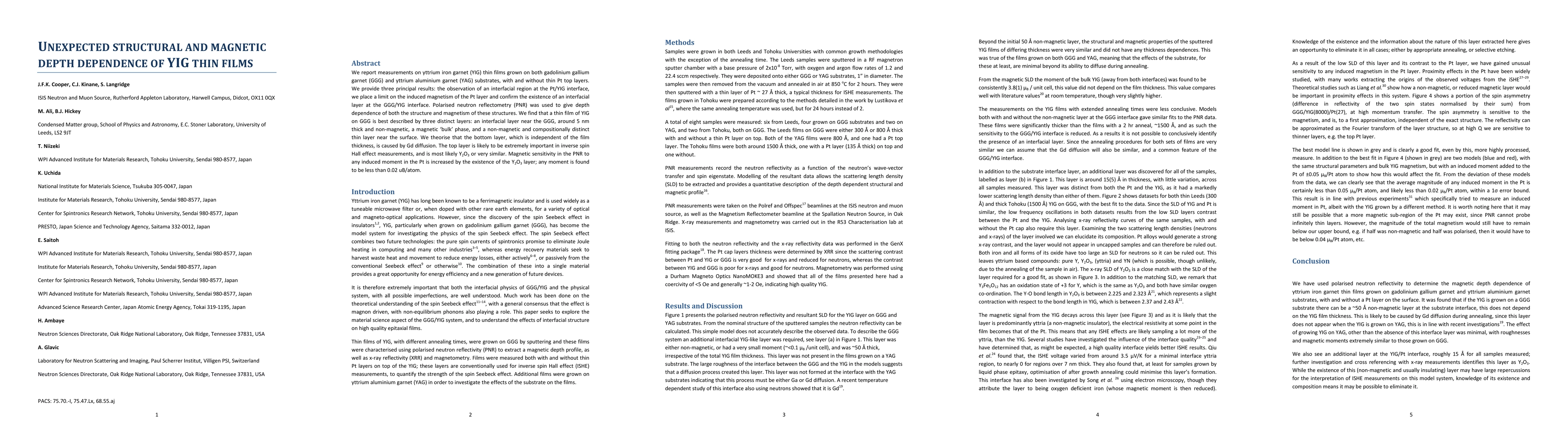 We report measurements on yttrium iron garnet (YIG) thin films grown on both gadolinium gallium garnet (GGG) and yttrium aluminium garnet (YAG) substrates, with and without thin Pt top layers. We provide three principal results: the observation of an interfacial region at the Pt/YIG interface, we place a limit on the induced magnetism of the Pt layer and confirm the existence of an interfacial layer at the GGG/YIG interface. Polarised neutron reflectometry (PNR) was used to give depth dependence of both the structure and magnetism of these structures. We find that a thin film of YIG on GGG is best described by three distinct layers: an interfacial layer near the GGG, around 5 nm thick and non-magnetic, a magnetic bulk phase, and a non-magnetic and compositionally distinct thin layer near the surface. We theorise that the bottom layer, which is independent of the film thickness, is caused by Gd diffusion. The top layer is likely to be extremely important in inverse spin Hall effect measurements, and is most likely Y2O3 or very similar. Magnetic sensitivity in the PNR to any induced moment in the Pt is increased by the existence of the Y2O3 layer; any moment is found to be less than 0.02 uB/atom.
