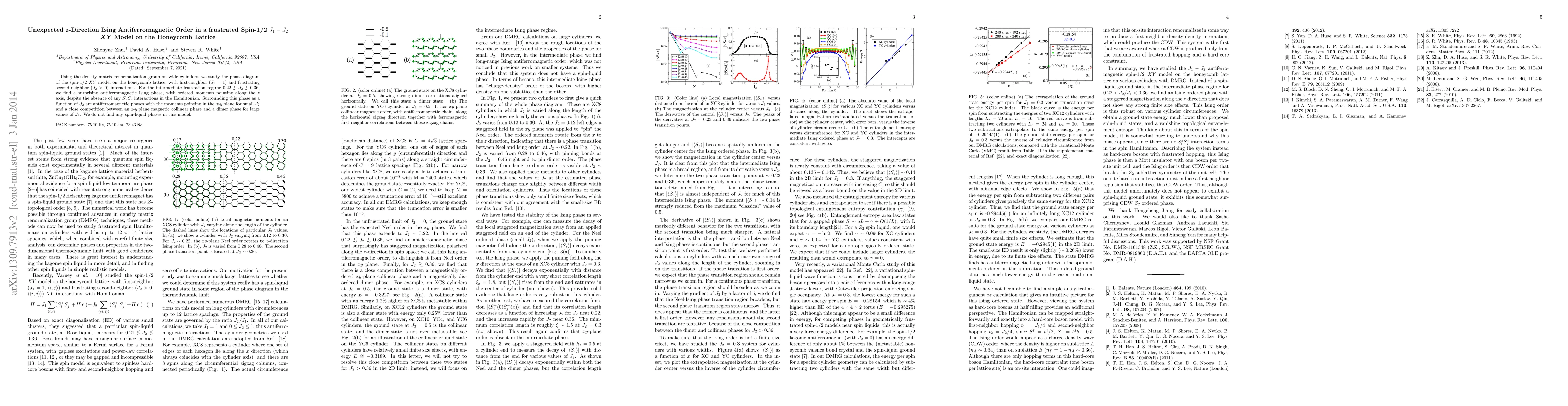 Using the density matrix renormalization group (DMRG) on wide cylinders, we study the phase diagram of the spin-1/2 XY model on the honeycomb lattice, with first-neighbor ($J_1 = 1$) and frustrating second-neighbor ($J_2>0$) interactions. For the intermediate frustration regime $0.22\lesssim J_2\lesssim0.36$, we find a surprising antiferromagnetic Ising phase, with ordered moments pointing along the z axis, despite the absence of any S_z_z interactions in the Hamiltonian. Surrounding this phase as a function of $J_2$ are antiferromagnetic phases with the moments pointing in the $x-y$ plane for small $J_2$ and a close competition between an $x-y$ plane magnetic collinear phase and a dimer phase for large values of $J_2$. We do not find any spin liquid phases in this model.