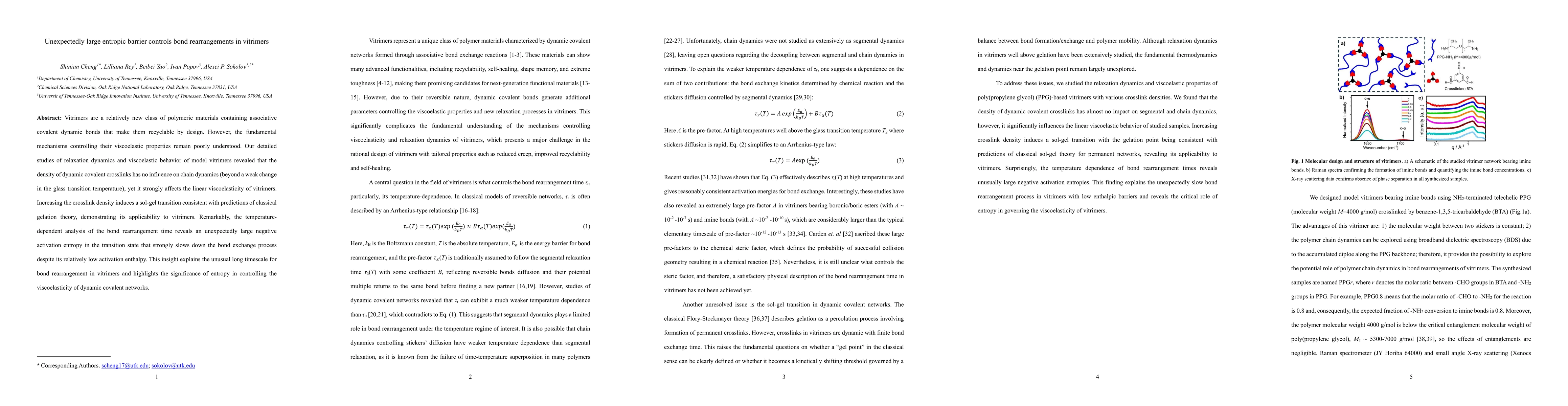 Vitrimers are a relatively new class of polymeric materials containing associative covalent dynamic bonds that make them recyclable by design. However, the fundamental mechanisms controlling their viscoelastic properties remain poorly understood. Our detailed studies of relaxation dynamics and viscoelastic behavior of model vitrimers revealed that the density of dynamic covalent crosslinks has no influence on chain dynamics (beyond a weak change in the glass transition temperature), yet it strongly affects the linear viscoelasticity of vitrimers. Increasing the crosslink density induces a sol-gel transition consistent with predictions of classical gelation theory, demonstrating its applicability to vitrimers. Remarkably, the temperature-dependent analysis of the bond rearrangement time reveals an unexpectedly large negative activation entropy in the transition state that strongly slows down the bond exchange process despite its relatively low activation enthalpy. This insight explains the unusual long timescale for bond rearrangement in vitrimers and highlights the significance of entropy in controlling the viscoelasticity of dynamic covalent networks.