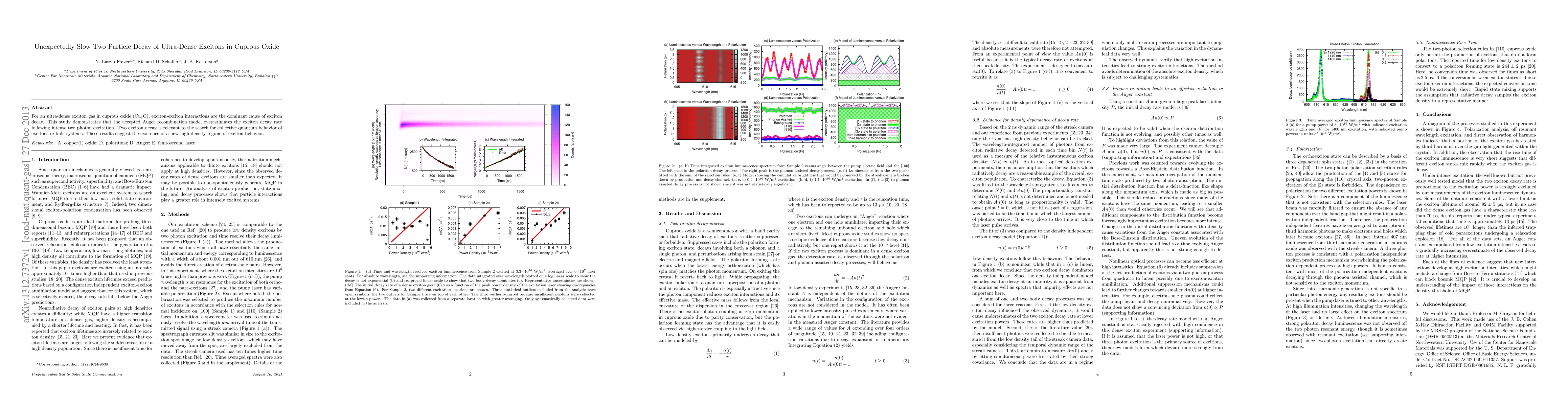 This study reveals that the decay rate of ultra-dense excitons in cuprous oxide is unexpectedly slow, contradicting the Auger recombination model. The findings suggest a new high-density regime of exciton behavior and have implications for understanding collective quantum behavior in bulk systems.
