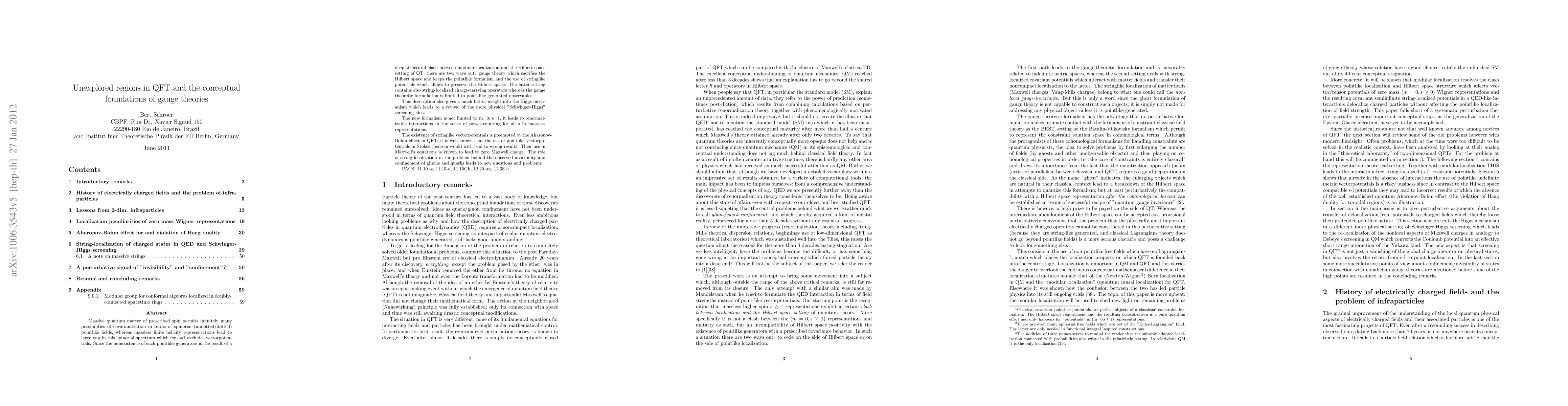 Massive quantum matter of prescribed spin permits infinitely many possibilities of covariantization in terms of spinorial (undotted/dotted) pointlike fields, whereas massless finite helicity representations lead to large gap in this spinorial spectrum which for s=1 excludes vectorpotentials. Since the nonexistence of such pointlike generators is the result of a deep structural clash between modular localization and the Hilbert space setting of QT, there are two ways out: gauge theory which sacrifies the Hilbert space and keeps the pointlike formalism and the use of stringlike potentials which allows to preserve the Hilbert space. The latter setting contains also string-localized charge-carrying operators whereas the gauge theoretic formulation is limited to point-like generated observables. This description also gives a much better insight into the Higgs mechanism which leads to a revival of the more physical "Schwinger-Higgs" screening idea. The new formalism is not limited to m=0, s=1, it leads to renormalizable interactions in the sense of power-counting for all s in massless representations. The existence of stringlike vectorpotentials is preempted by the Aharonov-Bohm effect in QFT; it is well-known that the use of pointlike vectorpotentials in Stokes theorem would with lead to wrong results. Their use in Maxwell's equations is known to lead to zero Maxwell charge. The role of string-localization in the problem behind the observed invisibility and confinement of gluons and quarks leads to new questions and problems. PACS: 11.10.-z, 11.15-q, 11.10Gh, 12.20.-m, 12.38.-t