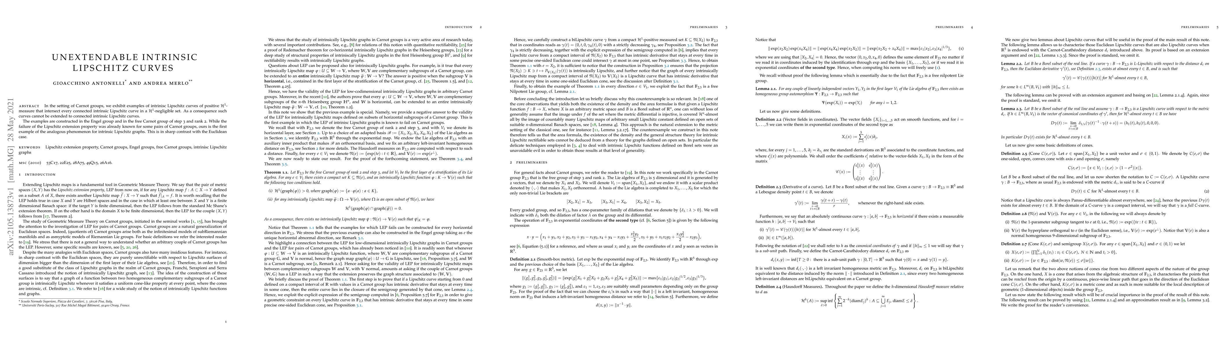 This paper presents intrinsic Lipschitz curves in Carnot groups that intersect any other connected intrinsic Lipschitz curve in a negligible set, demonstrating they cannot be extended to such curves. The examples are constructed in the Engel group and a free Carnot group of step 3 and rank 2, marking the first such instance for intrinsic Lipschitz graphs.