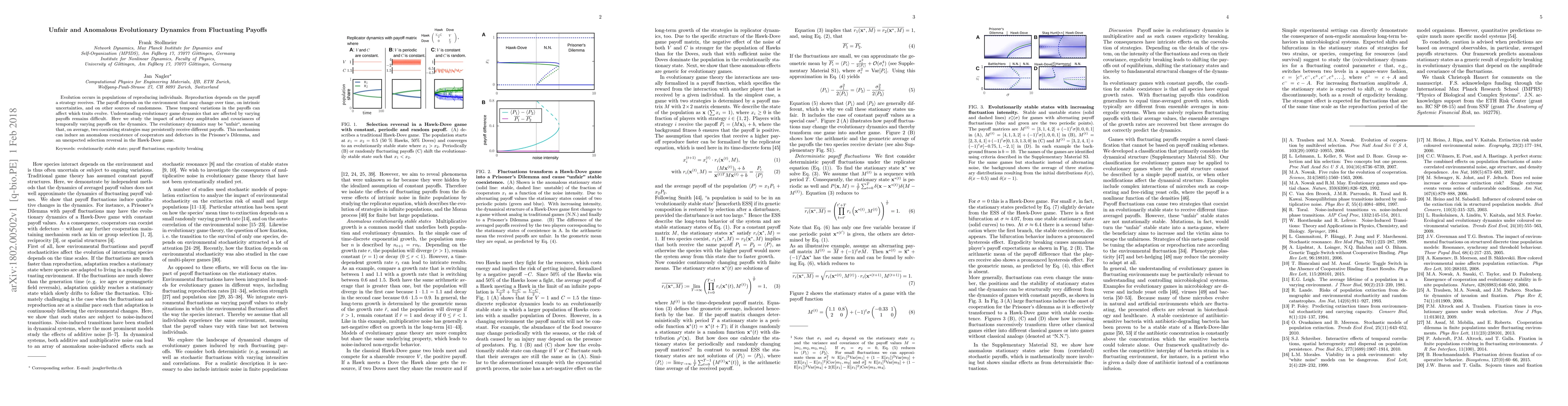 Evolution occurs in populations of reproducing individuals. Reproduction depends on the payoff a strategy receives. The payoff depends on the environment that may change over time, on intrinsic uncertainties, and on other sources of randomness. These temporal variations in the payoffs can affect which traits evolve. Understanding evolutionary game dynamics that are affected by varying payoffs remains difficult. Here we study the impact of arbitrary amplitudes and covariances of temporally varying payoffs on the dynamics. The evolutionary dynamics may be "unfair", meaning that, on average, two coexisting strategies may persistently receive different payoffs. This mechanism can induce an anomalous coexistence of cooperators and defectors in the Prisoner's Dilemma, and an unexpected selection reversal in the Hawk-Dove game.